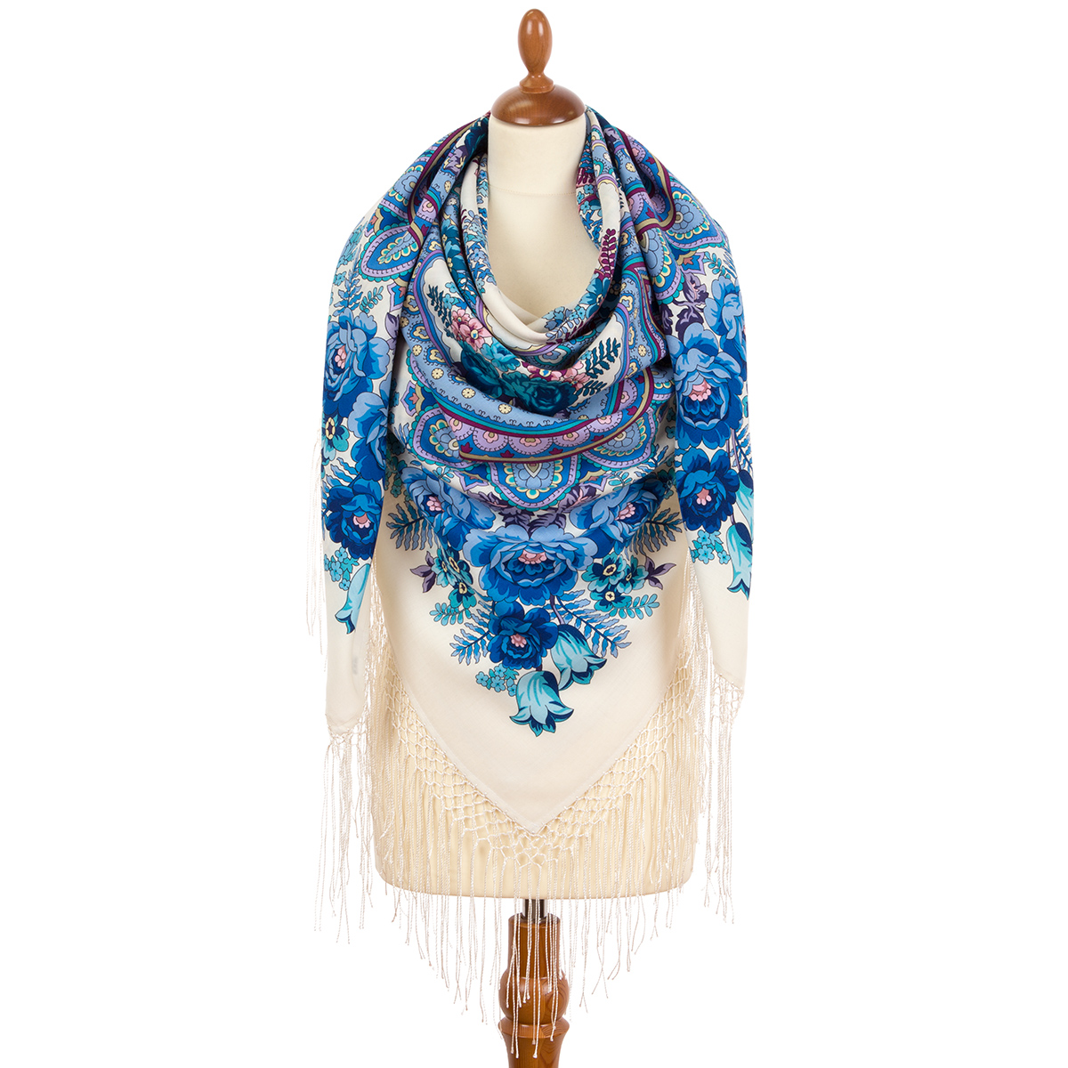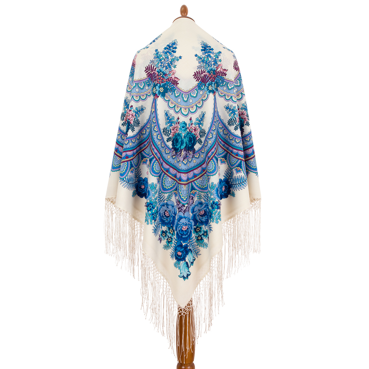 Многоцветный платок из уплотненной шерстяной ткани с шелковой бахромой "В сто сорок солнц закат пылал", 2137-1, 148х148см