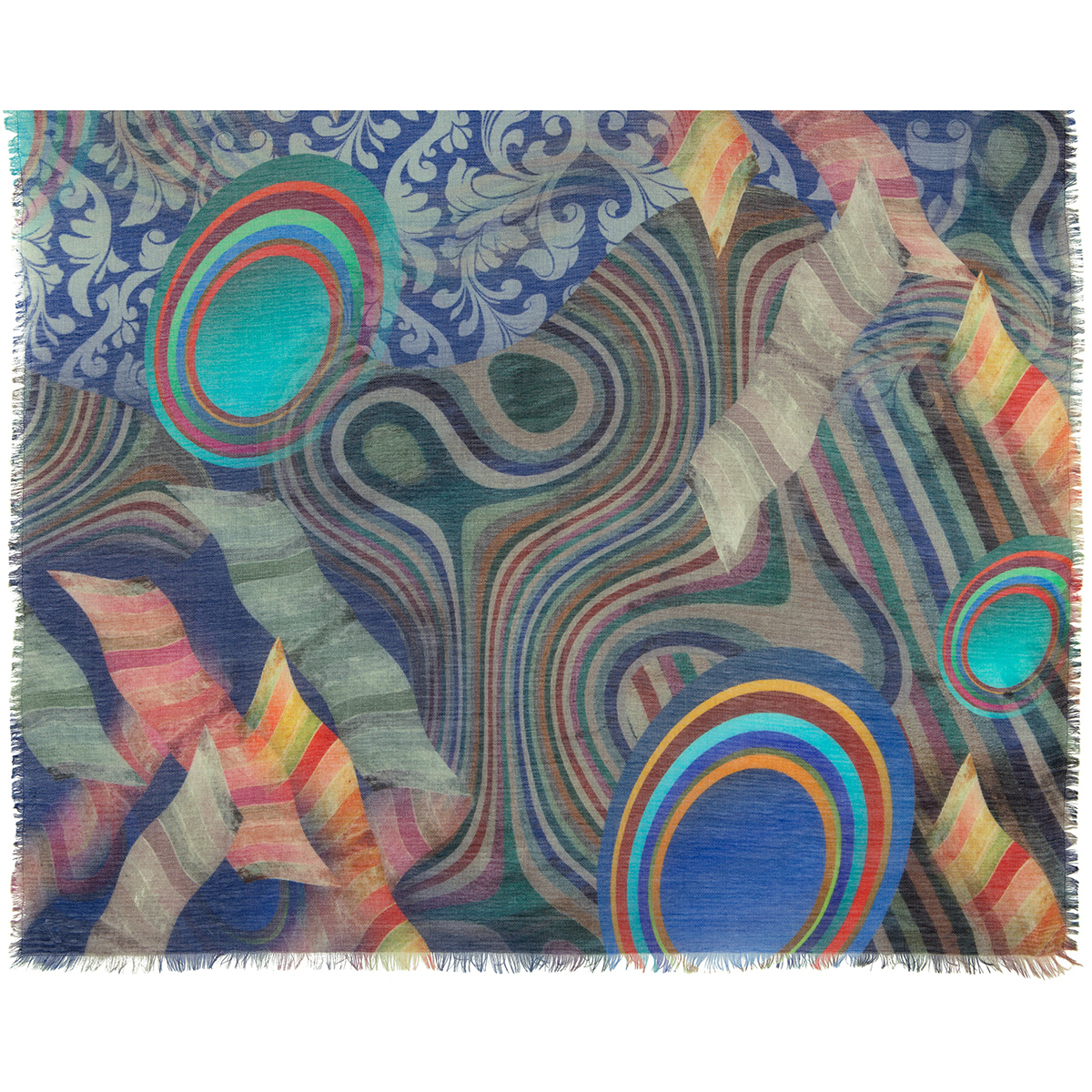 Палантин шерстяной набивной "10212", вид 14, 80х230 см