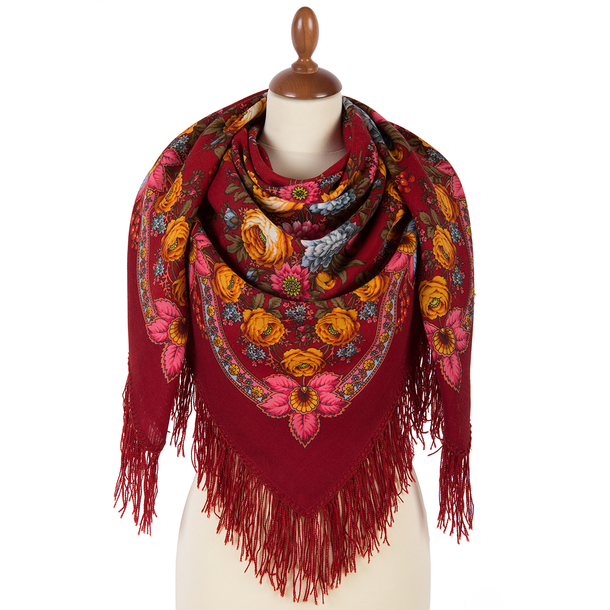Платок шерстяной с шерстяной бахромой "Черные глаза", вид 5, 125х125 см