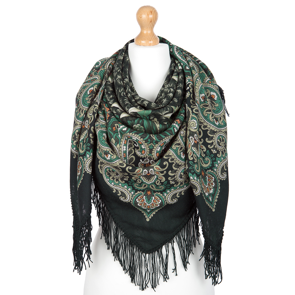 Платок шерстяной с шерстяной бахромой "Морозко", вид 10,125х125 см
