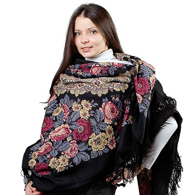 Платок шерстяной с шерстяной бахромой "Молитва", вид 20, 146x146 см