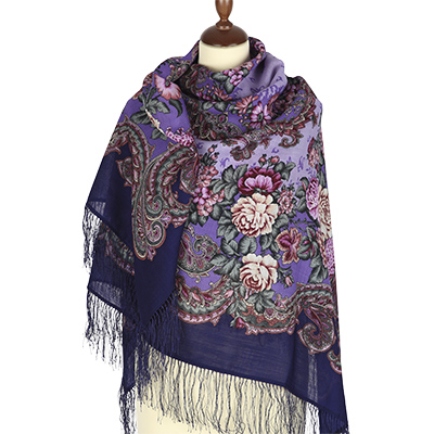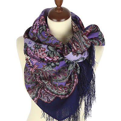 Платок шерстяной с шелковой бахромой " Бал-маскарад", вид 14, 125х125 см