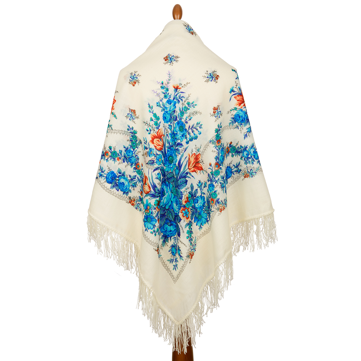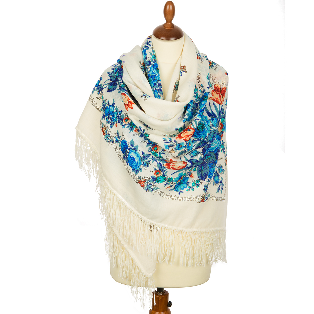Платок шерстяной с шерстяной бахромой "Гжель", вид 3, 146x146 см