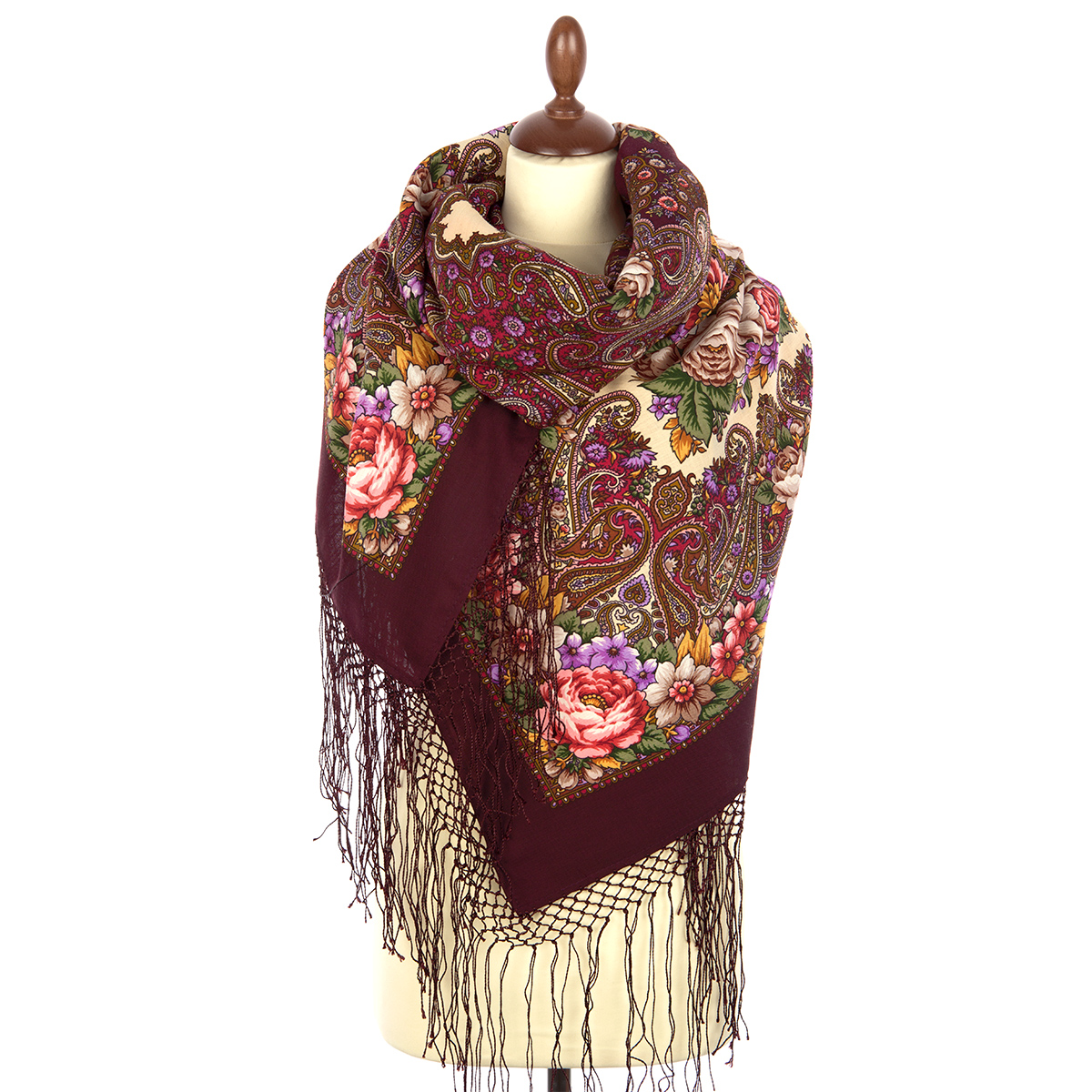 Многоцветный платок из уплотненной шерстяной ткани с шелковой бахромой "Остановись, мгновенье...", вид 7, 148х148см