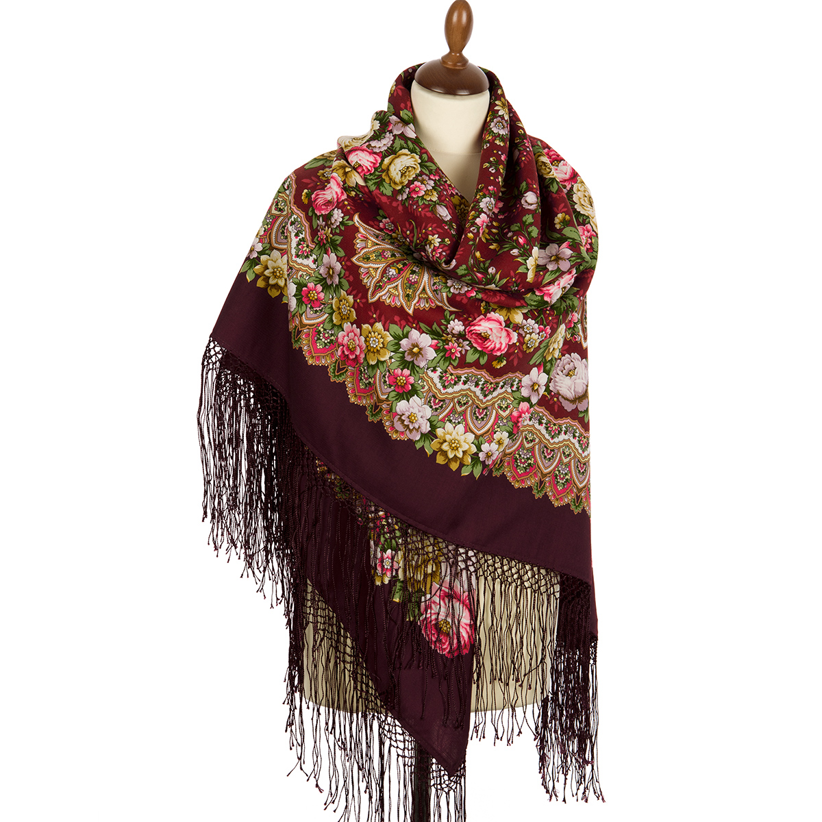 Платок из уплотненной шерстяной ткани с шелковой бахромой "Желанная", вид 7, 148х148см
