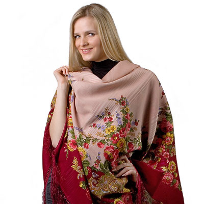 Платок шерстяной с просновками и шелковой бахромой "Изысканная", вид 5, 146x146 см