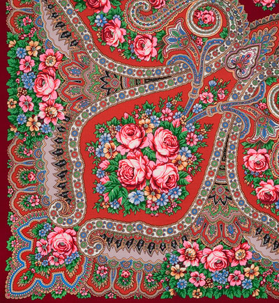 Шаль из уплотненной шерстяной ткани с шелковой бахромой "Мелодия любви", вид 5, 148х148см