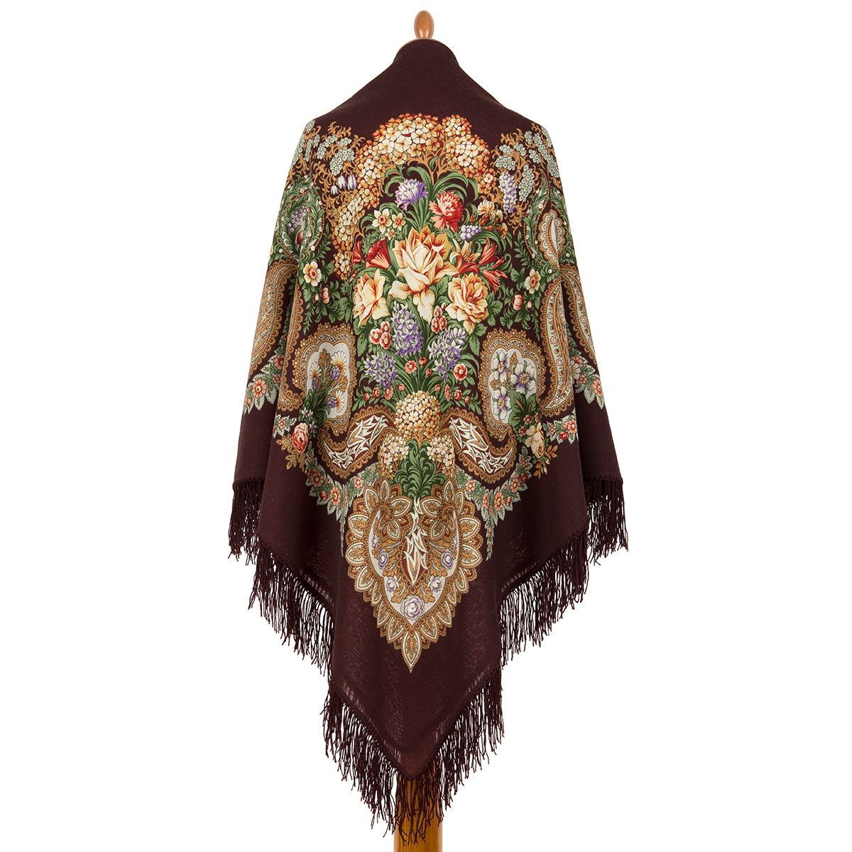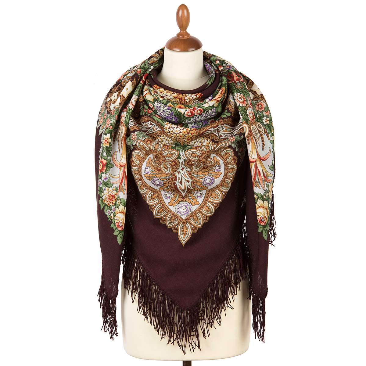 Платок шерстяной с шерстяной бахромой "Над серебряной водой", вид 17, 146x146 см