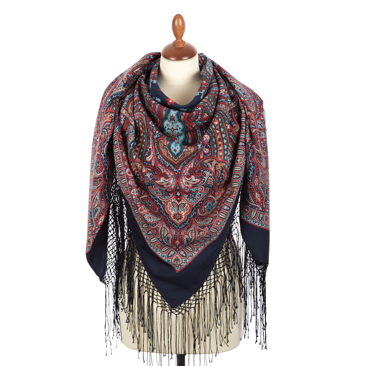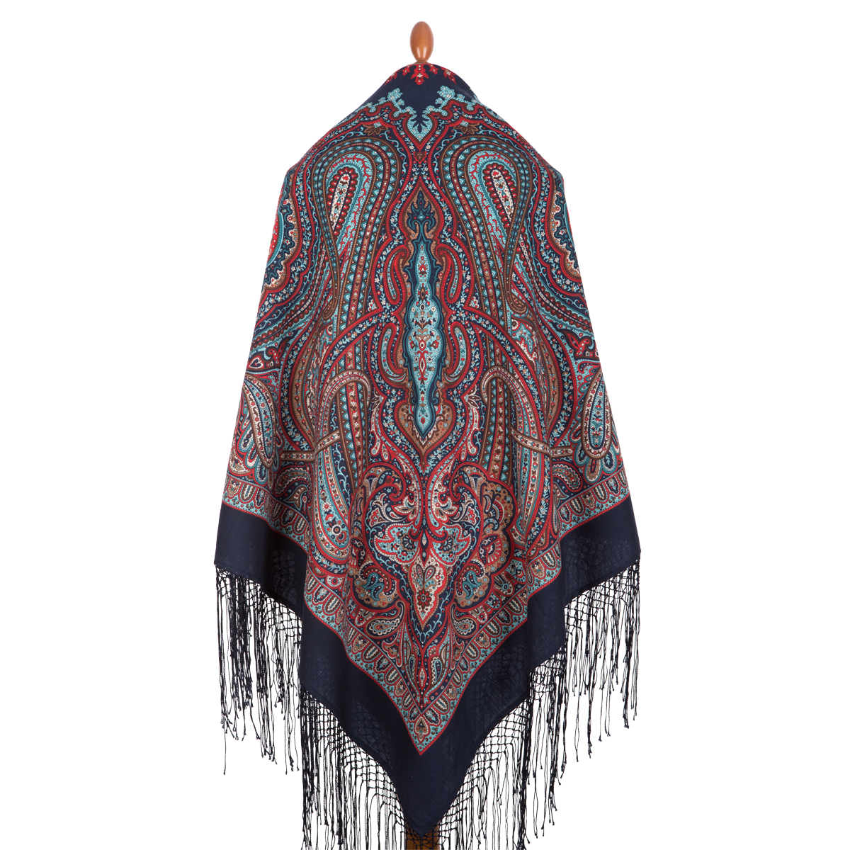 Платок из уплотненной шерстяной ткани с шелковой бахромой "Таинственный вечер", вид 14, 148х148см
