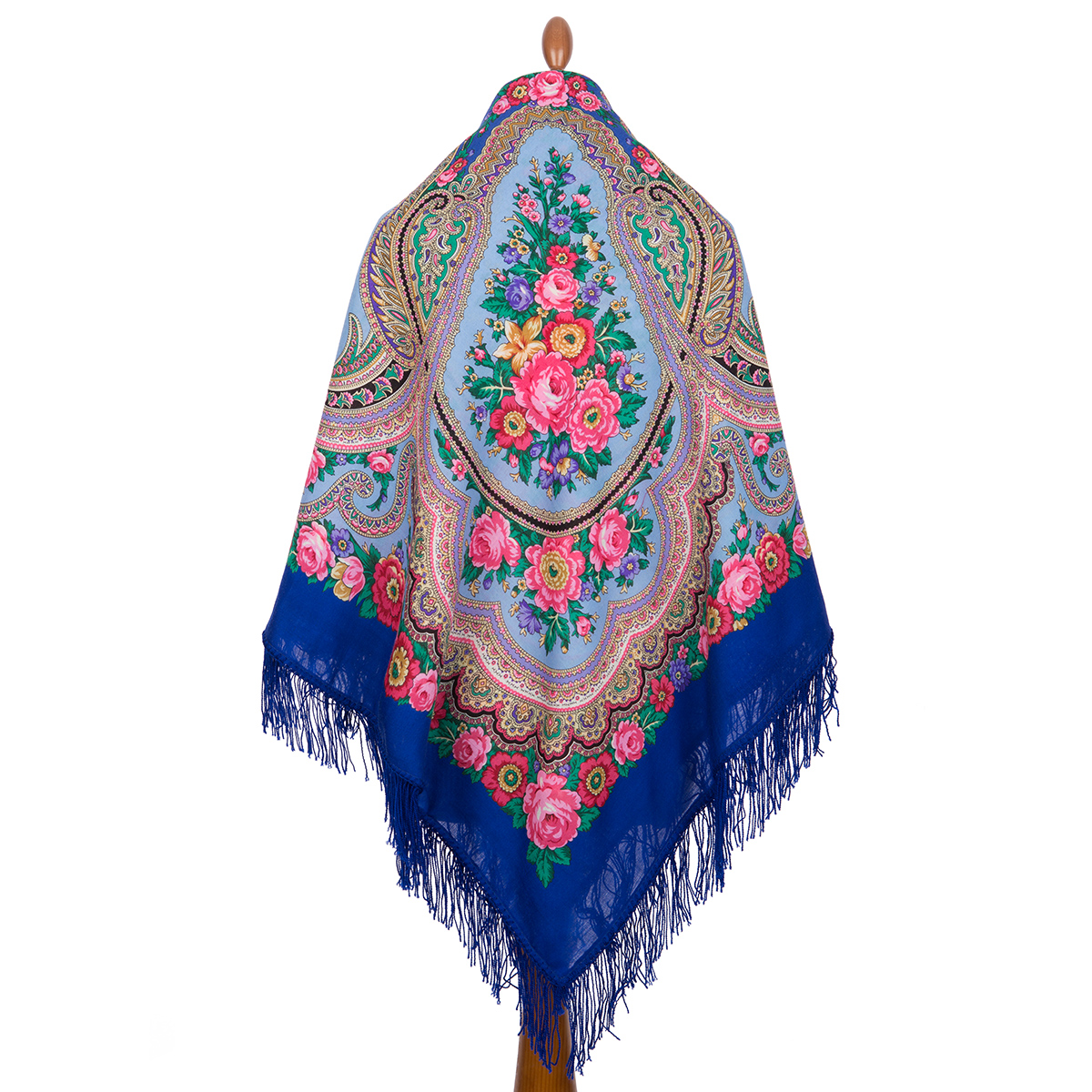 Платок шерстяной с шерстяной бахромой "Любава", 1289-14, 146x146 см
