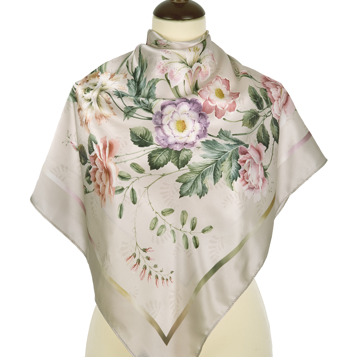 Платок шелковый (атлас) "Лунный сад " вид 1, 89x89 см