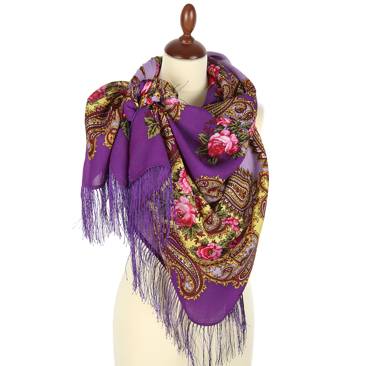 Платок шерстяной с шелковой бахромой "Час свиданья", вид 15, 146x146 см