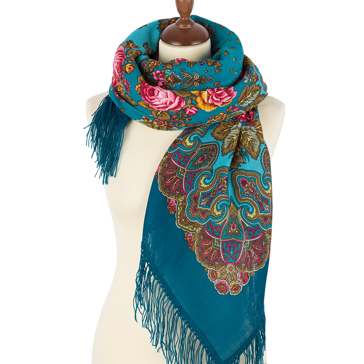 Платок шерстяной с шерстяной бахромой " Славянские праздники", вид 11, 146x146 см