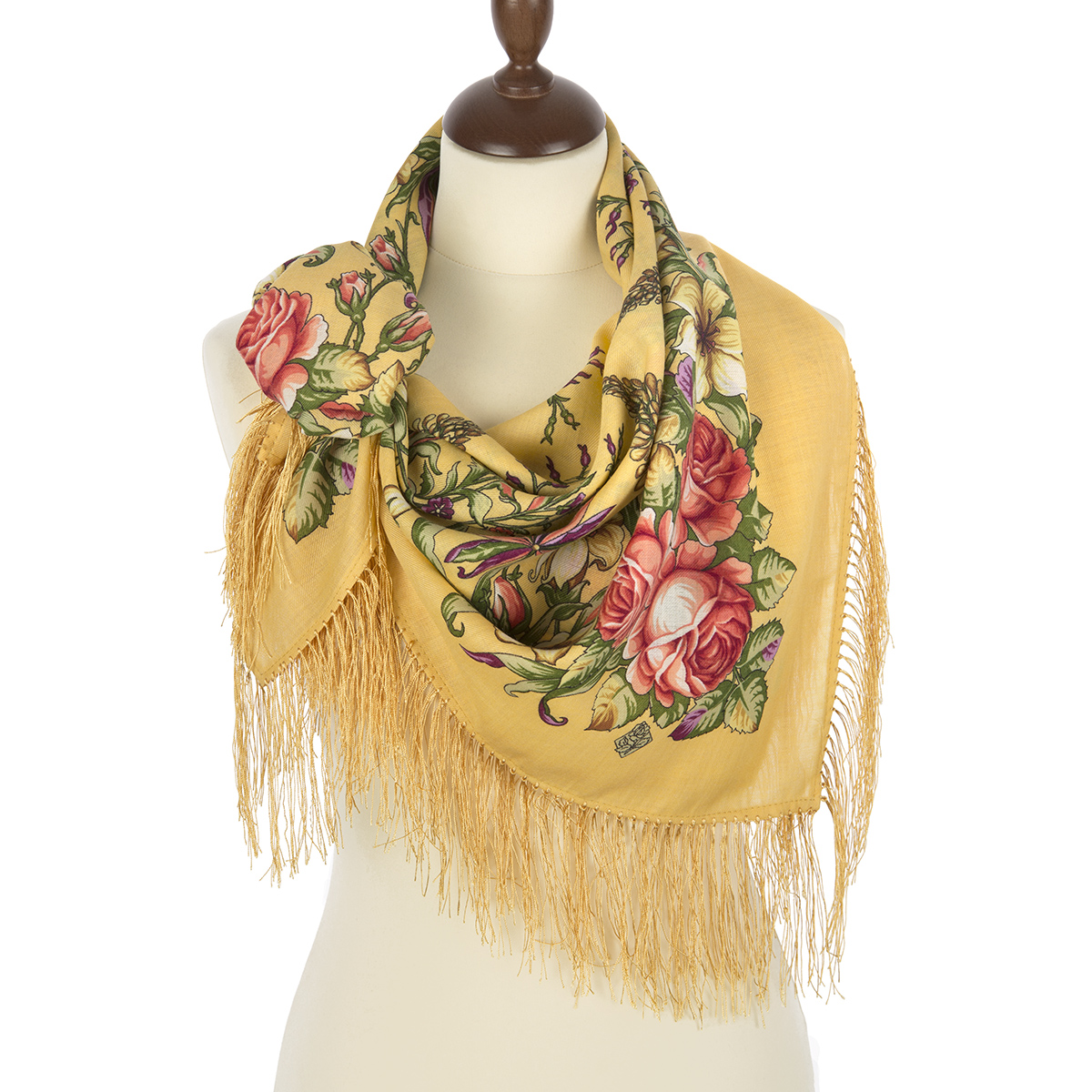 Платок шерстяной с шелковой бахромой " Весеннее путешествие", вид 2, 89x89 см