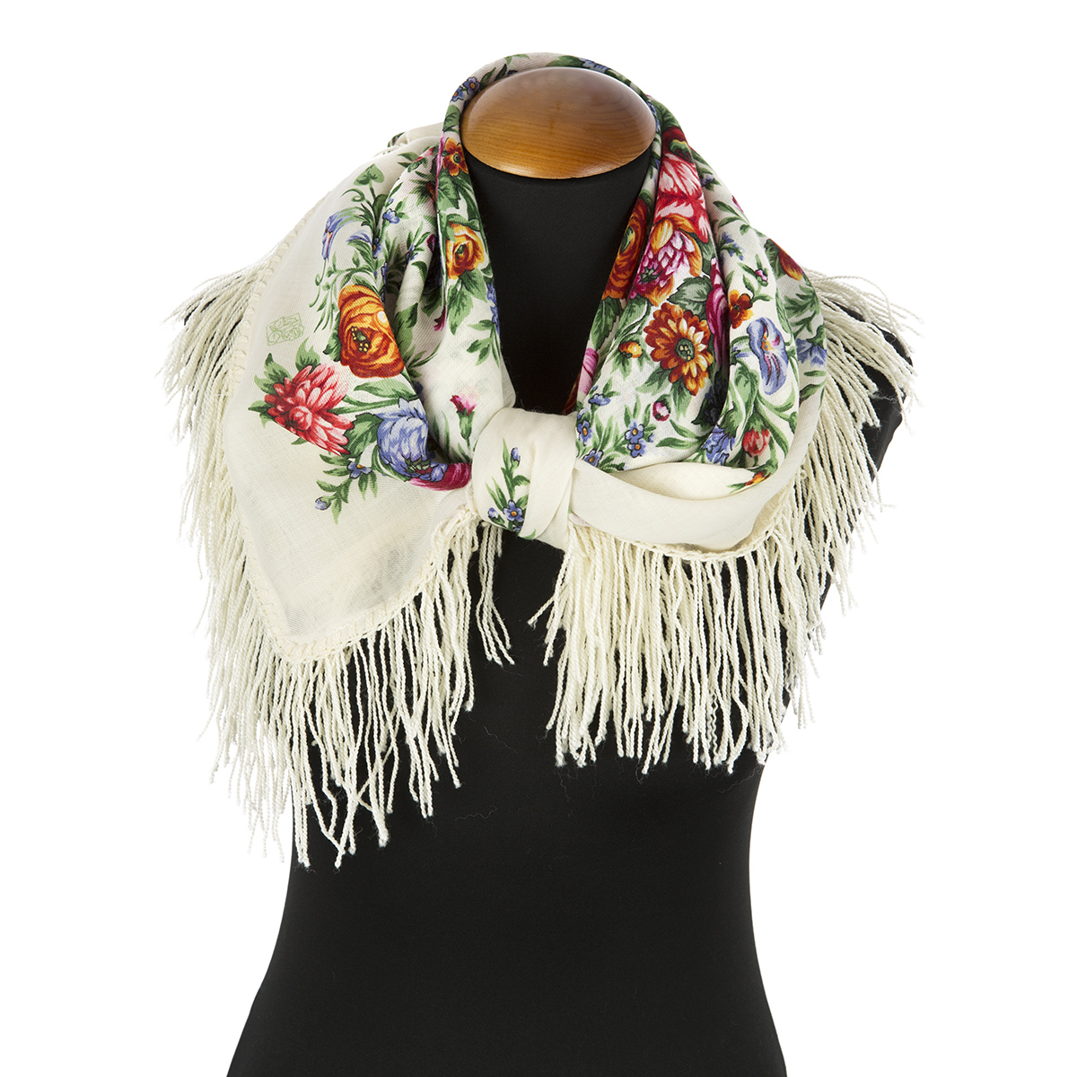 Платок шерстяной с шерстяной бахромой "Сад души", вид 1, 89х89 см