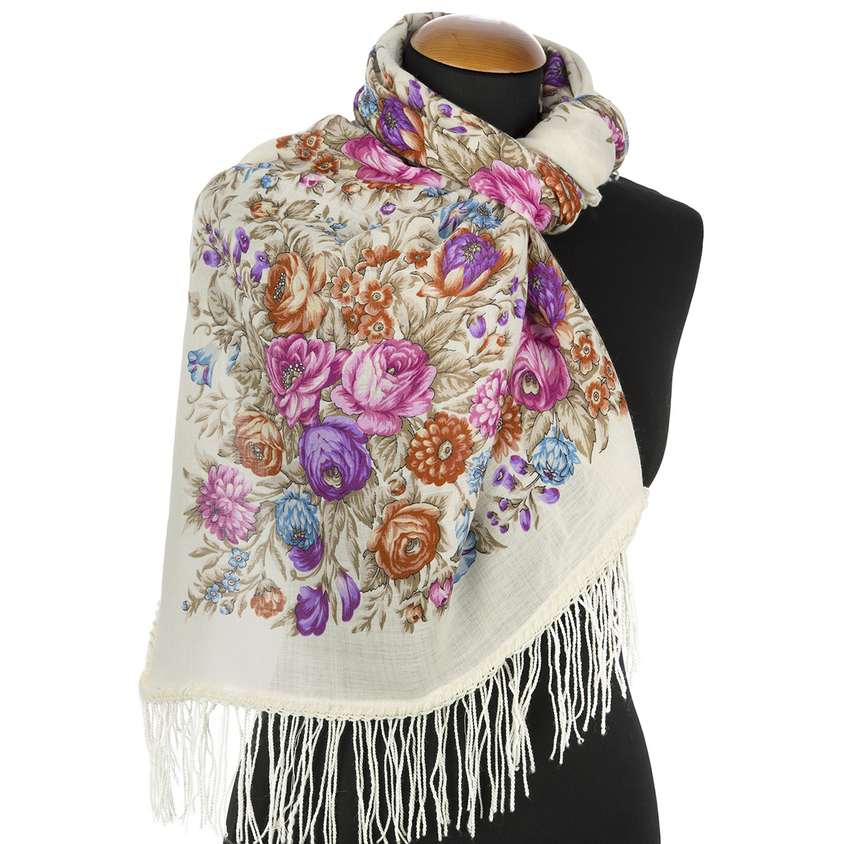 Платок шерстяной с шерстяной бахромой "Сад души", вид 2, 89х89 см