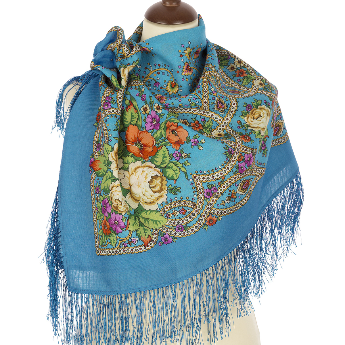 Платок шерстяной с шелковой бахромой "Марья-искусница", вид 13, 89х89 см