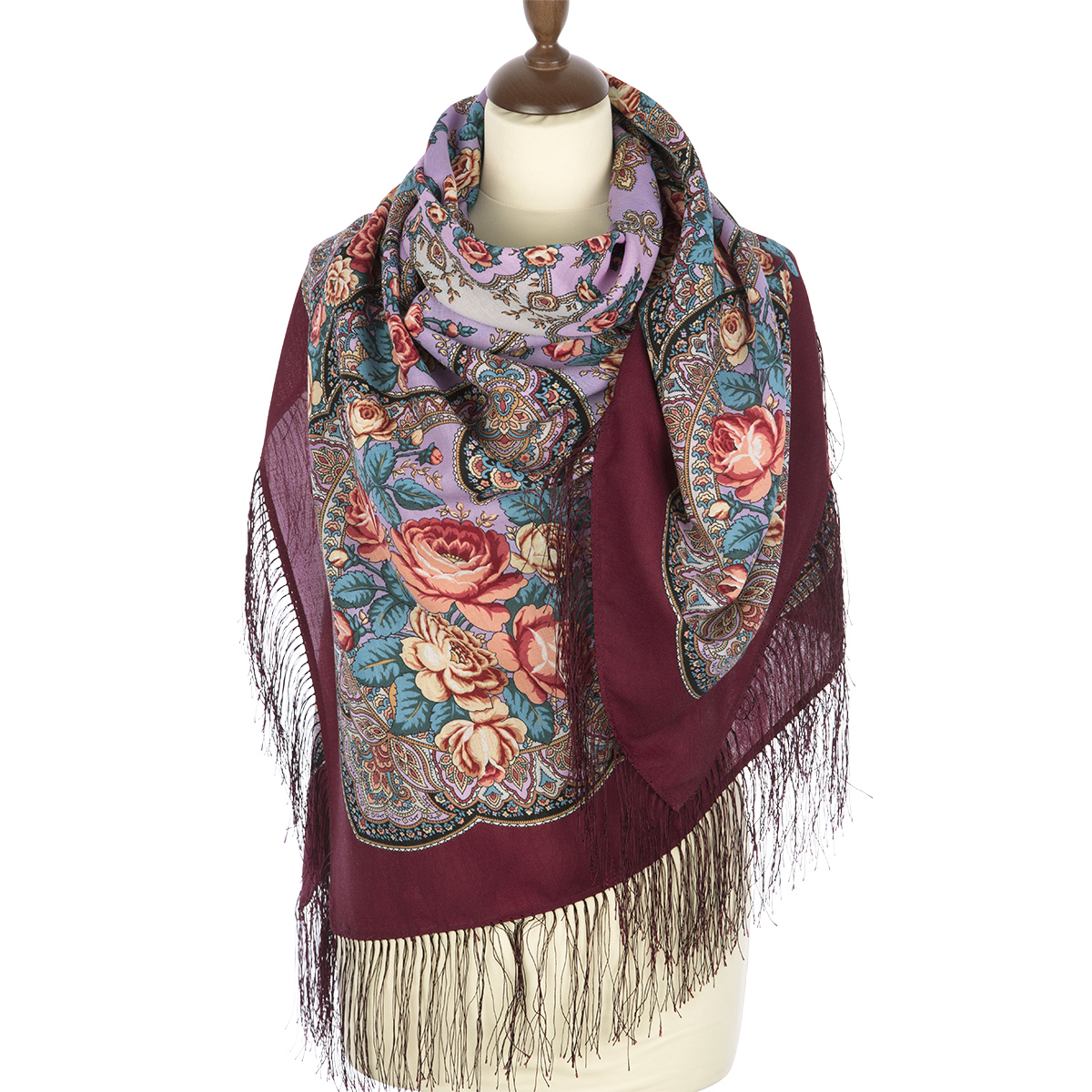 Платок шерстяной с шелковой бахромой "Розовые дали ", вид 6, 135х135 см