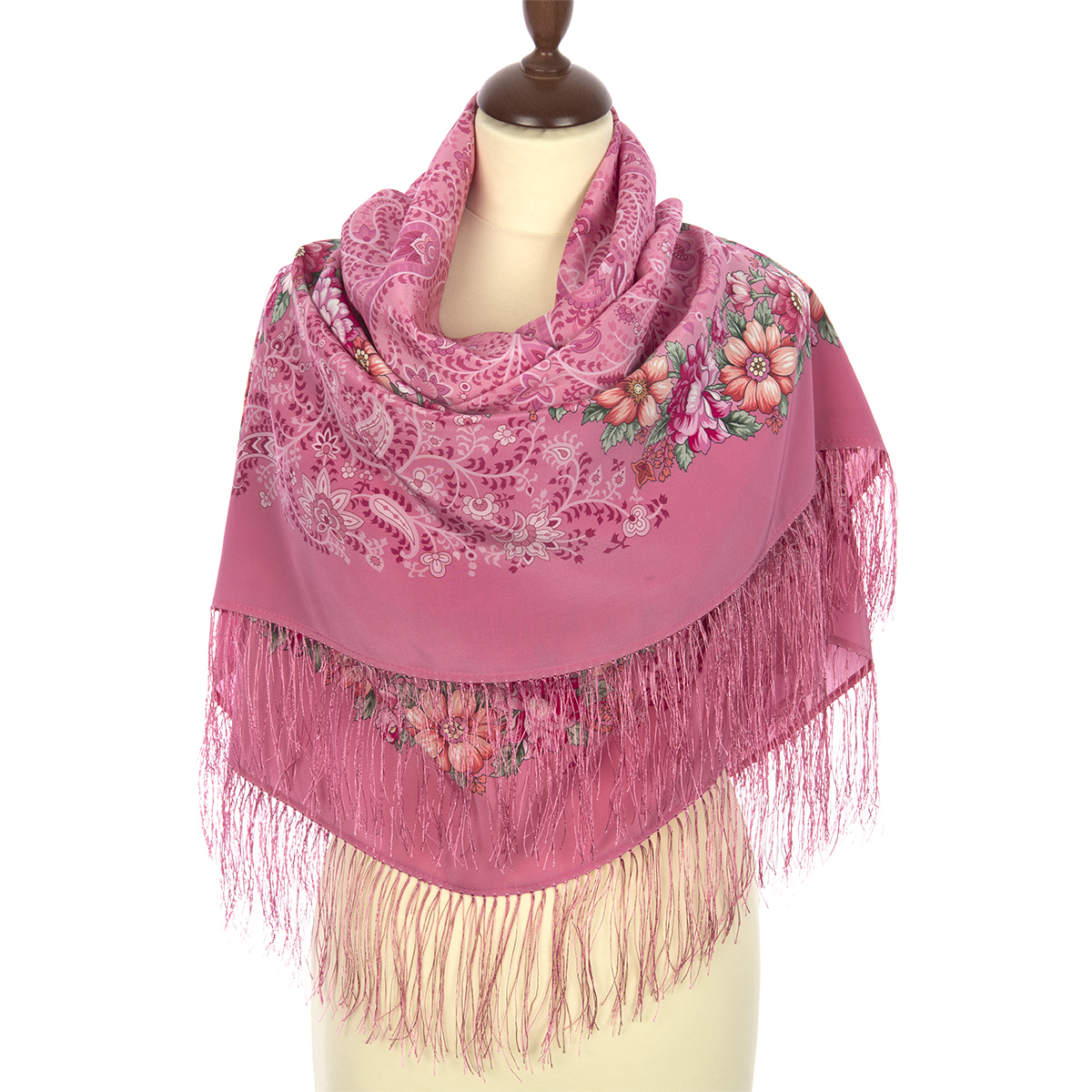 Платок шелковый (крепдешин, бахрома) "Золотая карусель ", вид 4, 130х130 см