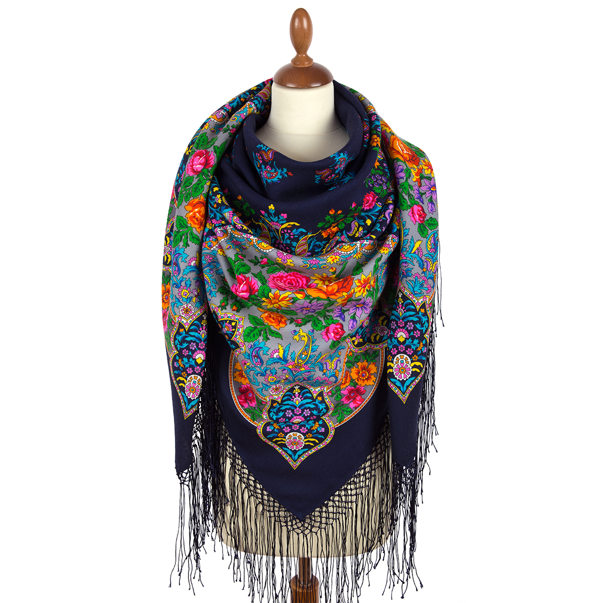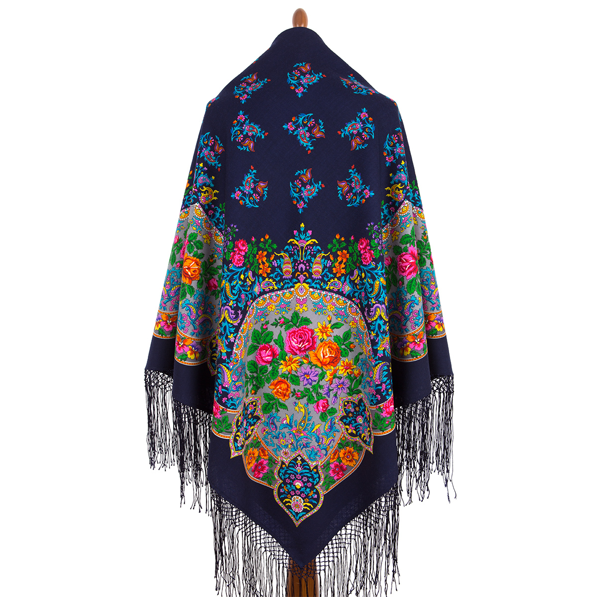 Шаль из уплотненной шерстяной ткани с шелковой бахромой "Медальоны" видnbsp;15, 148х148см