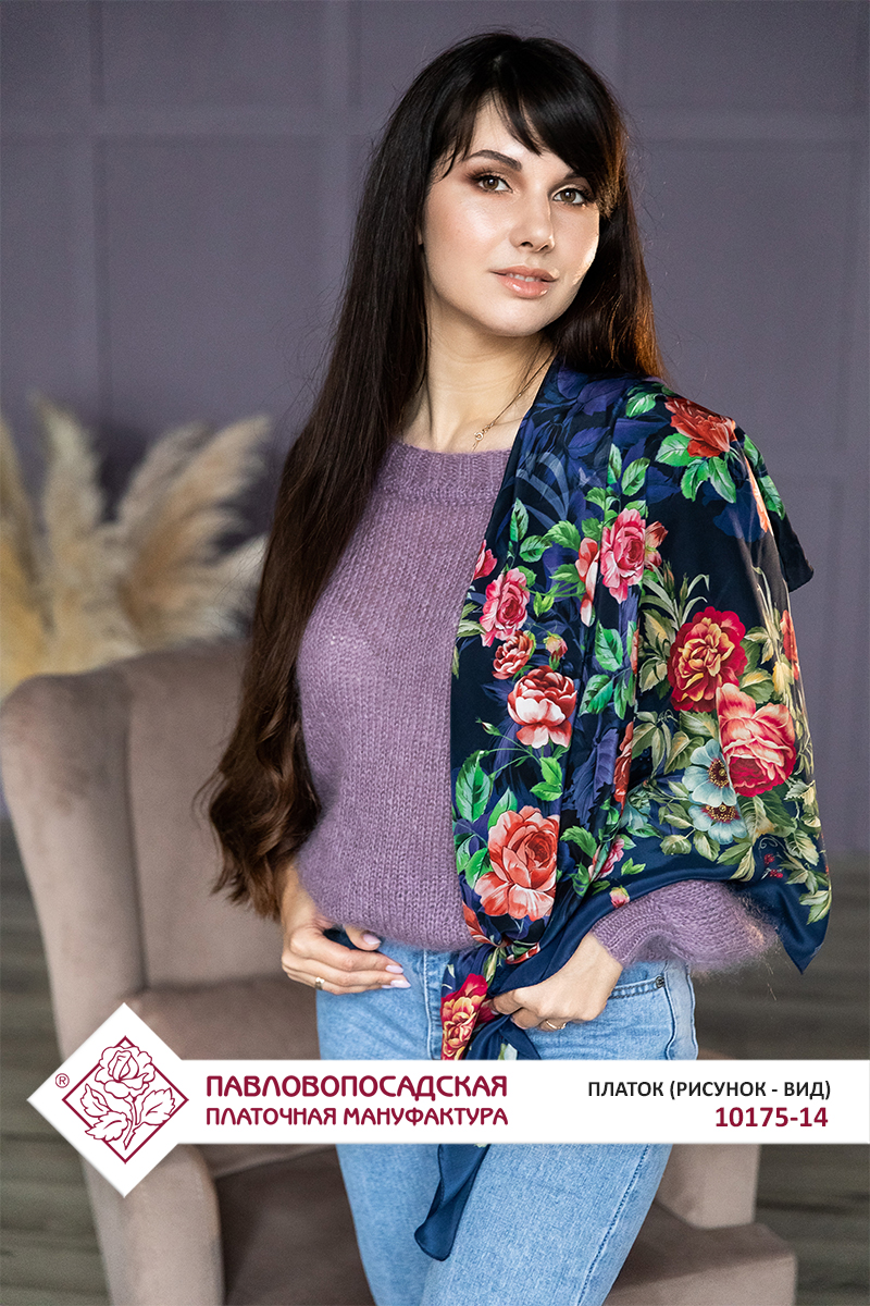 Платок шелковый (крепдешин) "10175", вид 14, 89х89 см