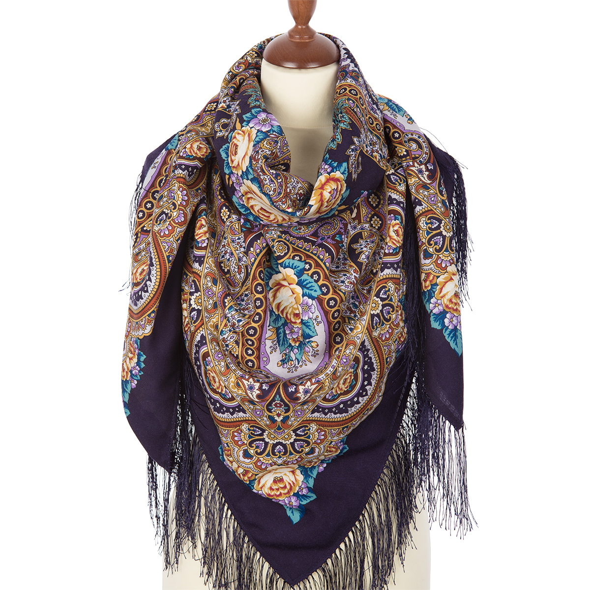 Платок шерстяной с шелковой бахромой "Русское раздолье", вид 15, 135х135 см