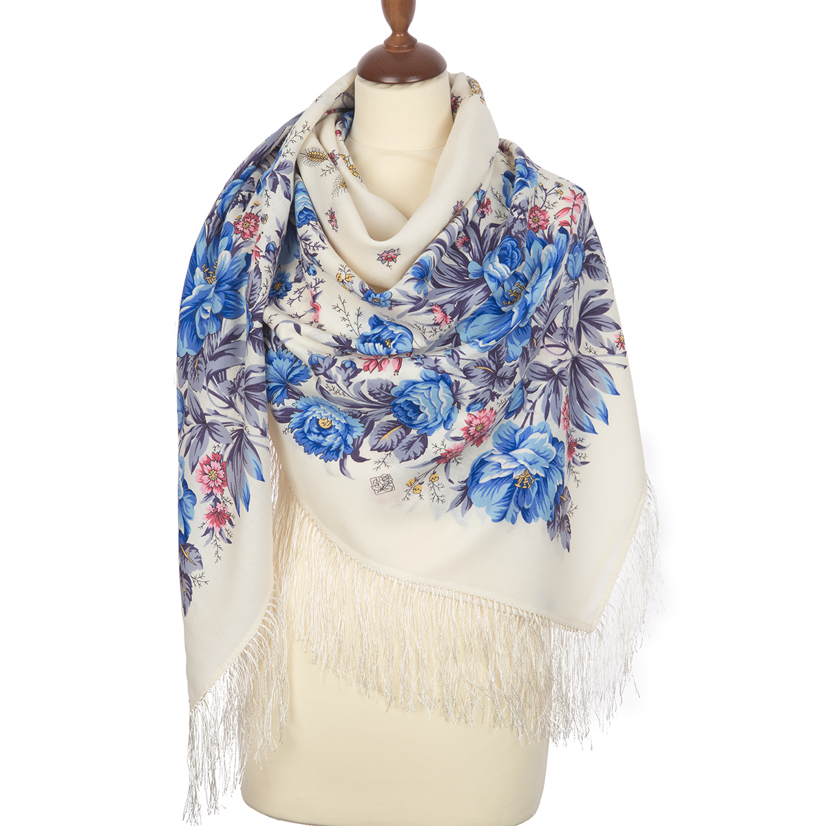 Платок шерстяной с шелковой бахромой "Утренний сад", вид 1, 135х135 см