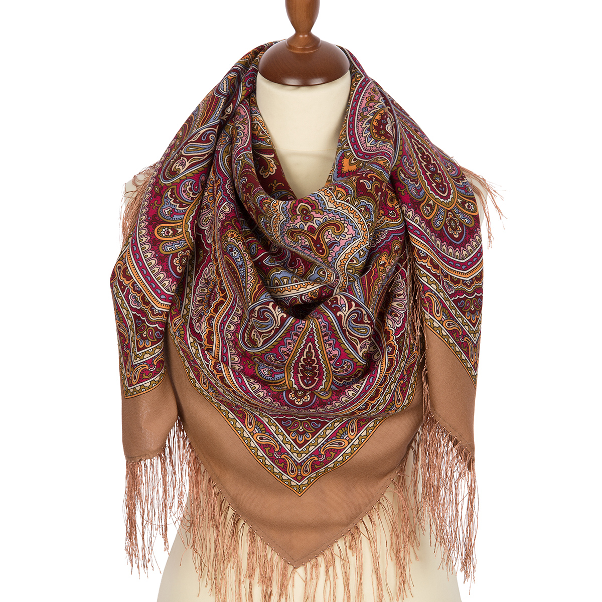 Платок шерстяной с шелковой бахромой "Узор дождя", вид 16, 110х110 см
