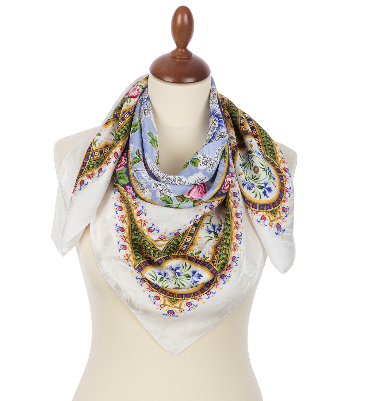 Платок шелковый (жаккард) "Северные цветы", вид 1, 89х89 см