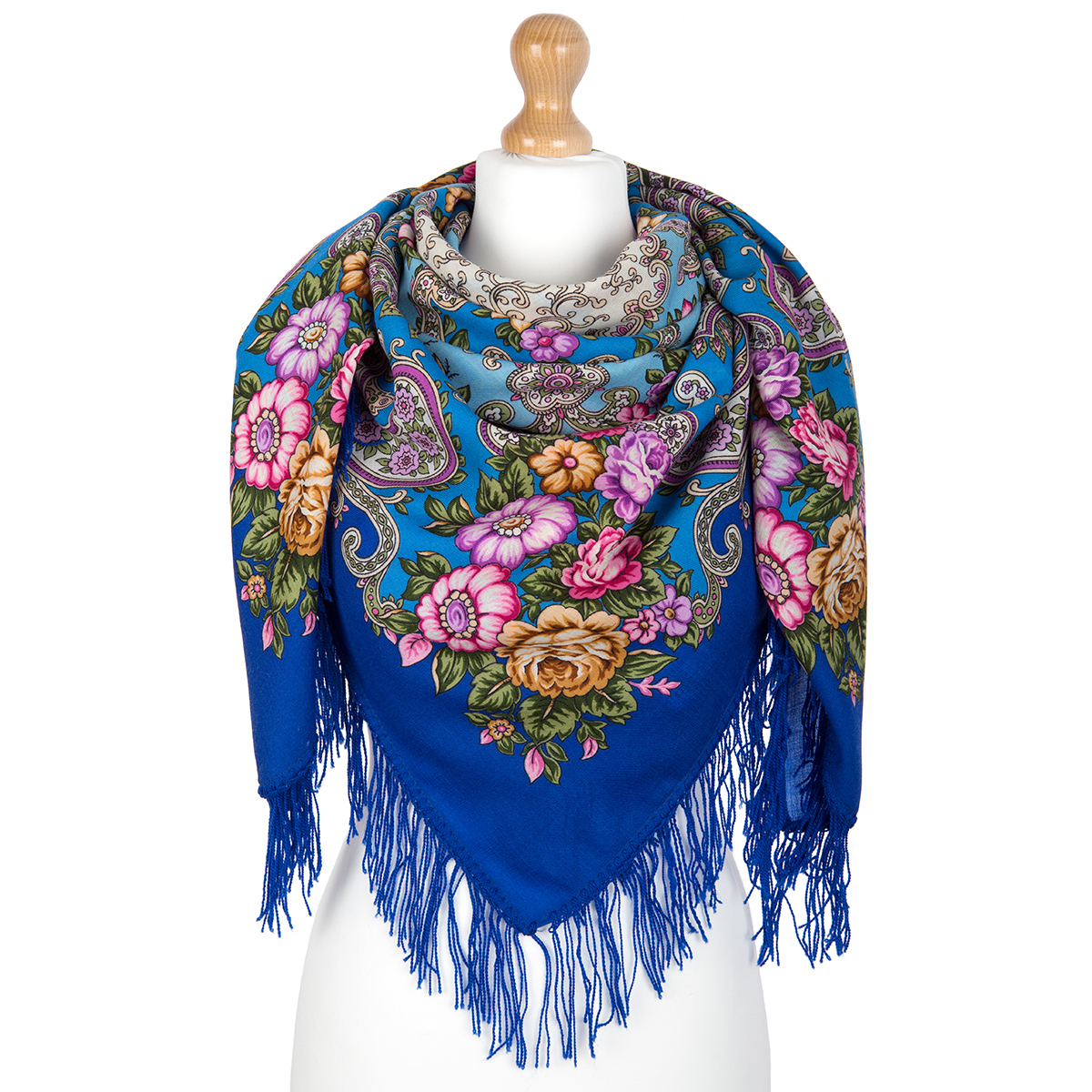 Платок шерстяной с шерстяной бахромой "В краю чудес", вид 13, 125х125 см