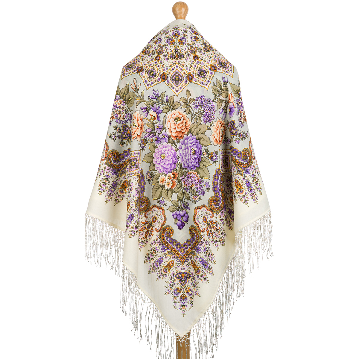 Платок шерстяной с шелковой вязаной бахромой "Феерия", вид 4, 135х135 см