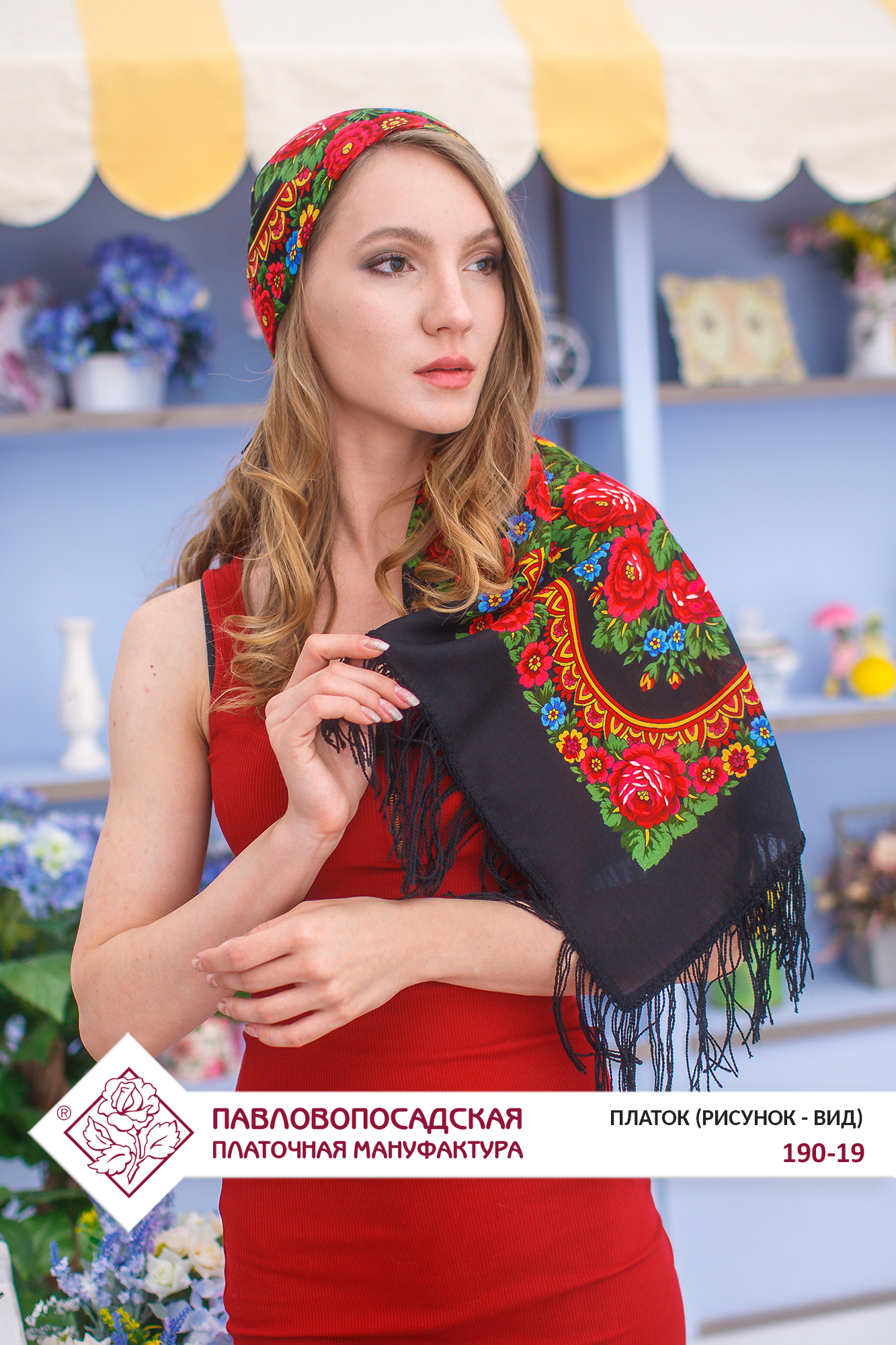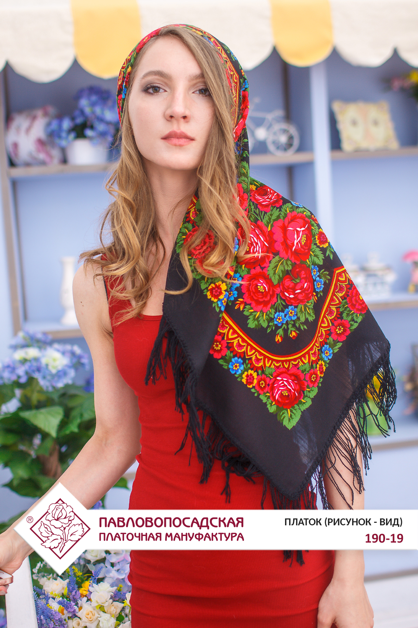 Платок шерстяной с шерстяной бахромой "Матрёшка", вид 190, 89x89 см