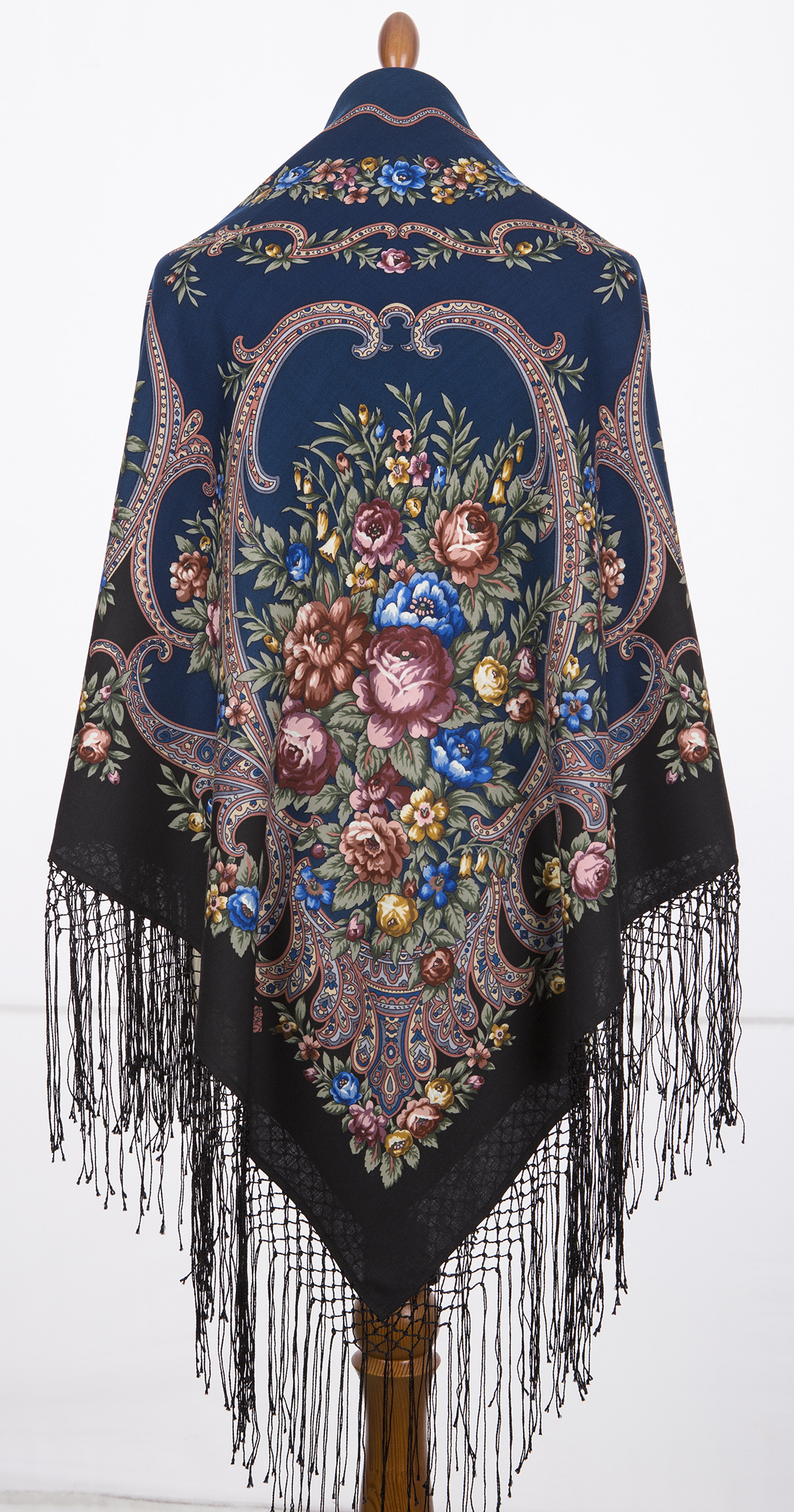 Многоцветный платок из уплотненной шерстяной ткани с шелковой бахромой "Русские сезоны", вид 18, 148х148см