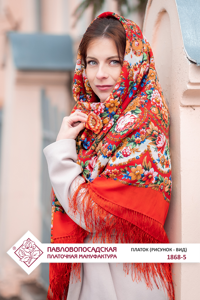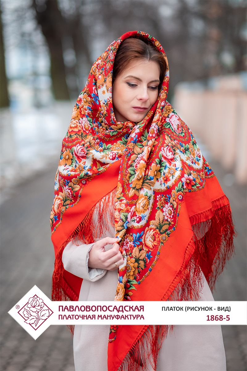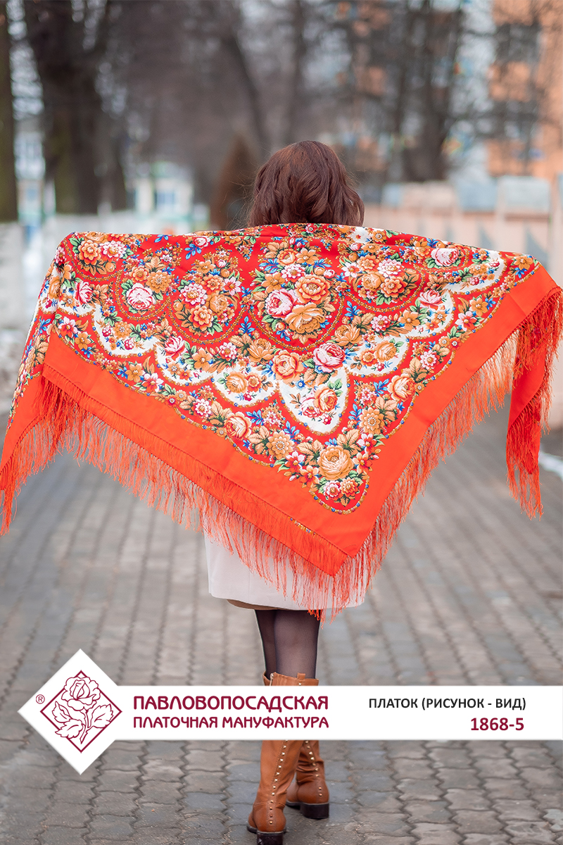 Платок шерстяной с шелковой бахромой "Именины сердца", вид 5, 146x146 см