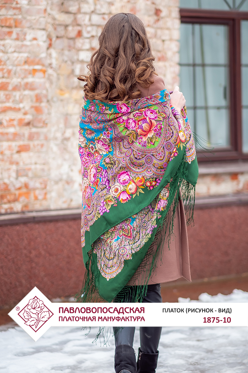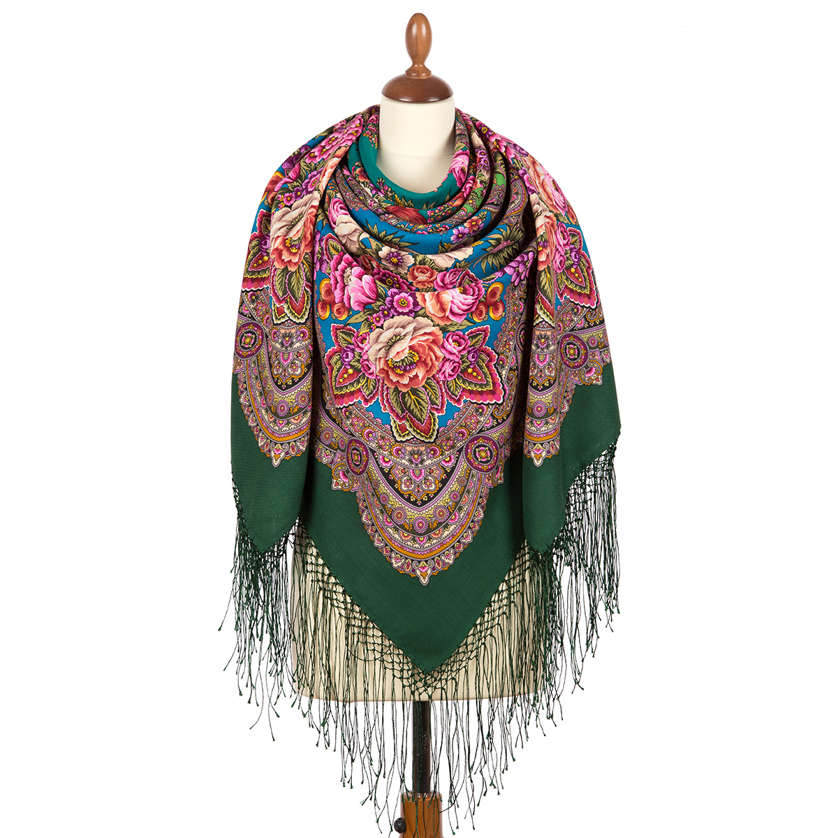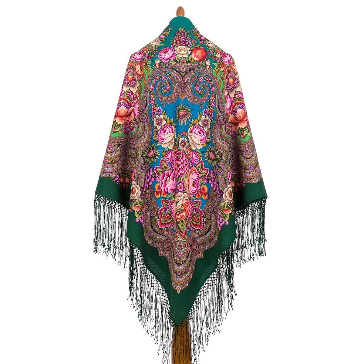 Многоцветный платок из уплотненной шерстяной ткани с шелковой бахромой "Цвет граната", вид 10, 148х148см