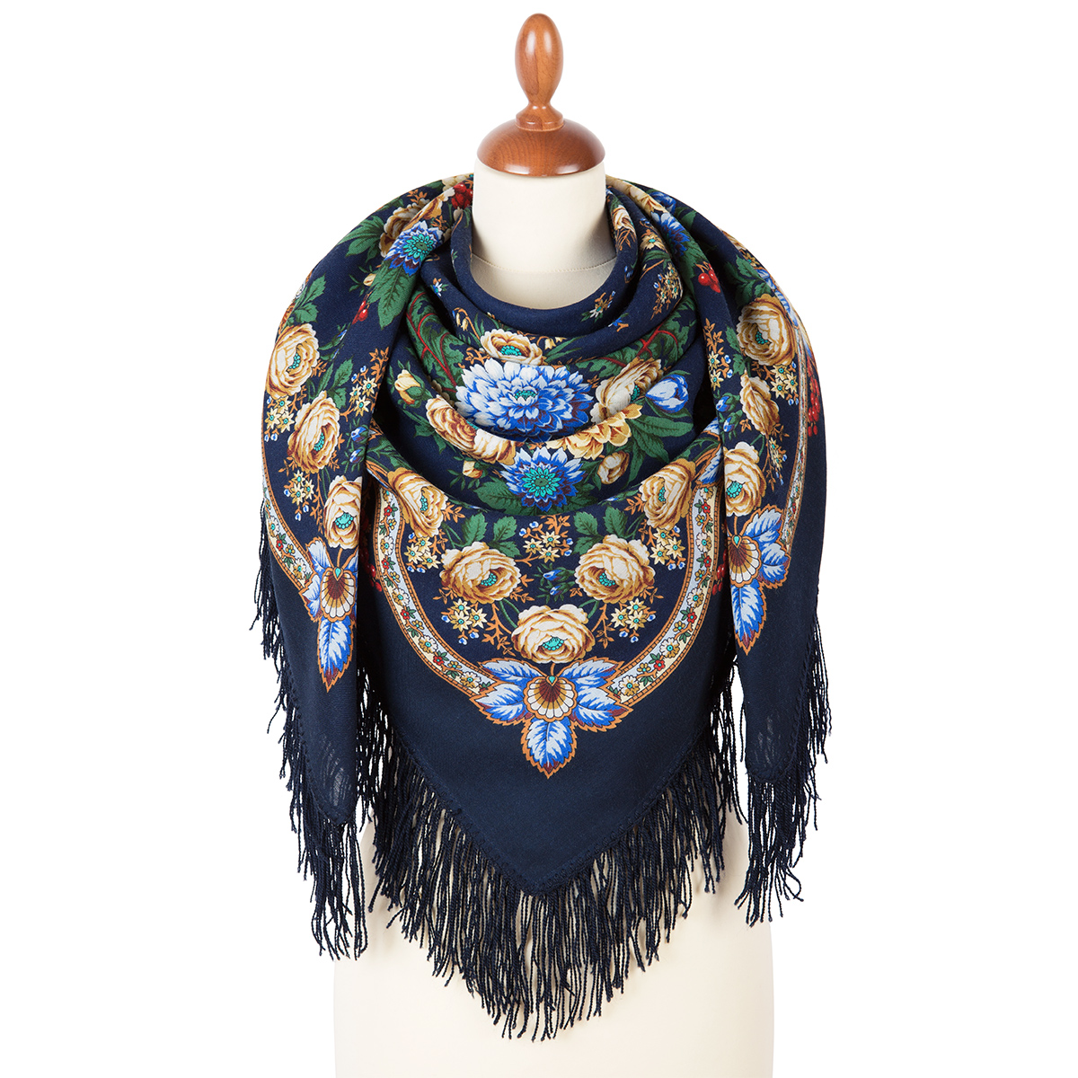 Платок шерстяной с шерстяной бахромой "Черные глаза", вид 14, 125х125 см