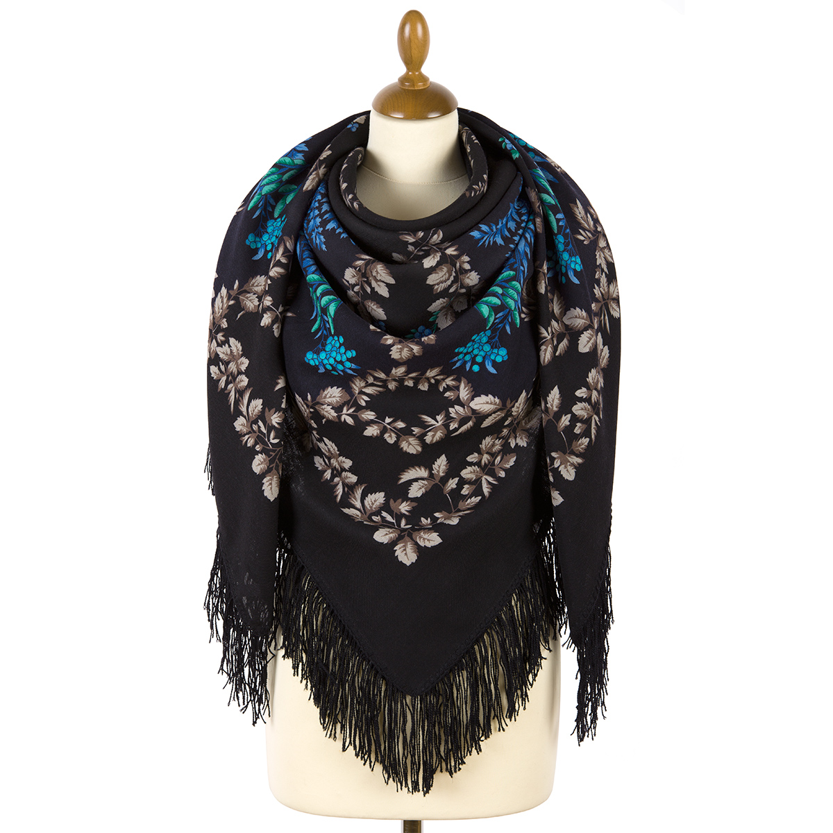 Платок шерстяной с шерстяной бахромой "Рябина", вид 22, 146x146 см