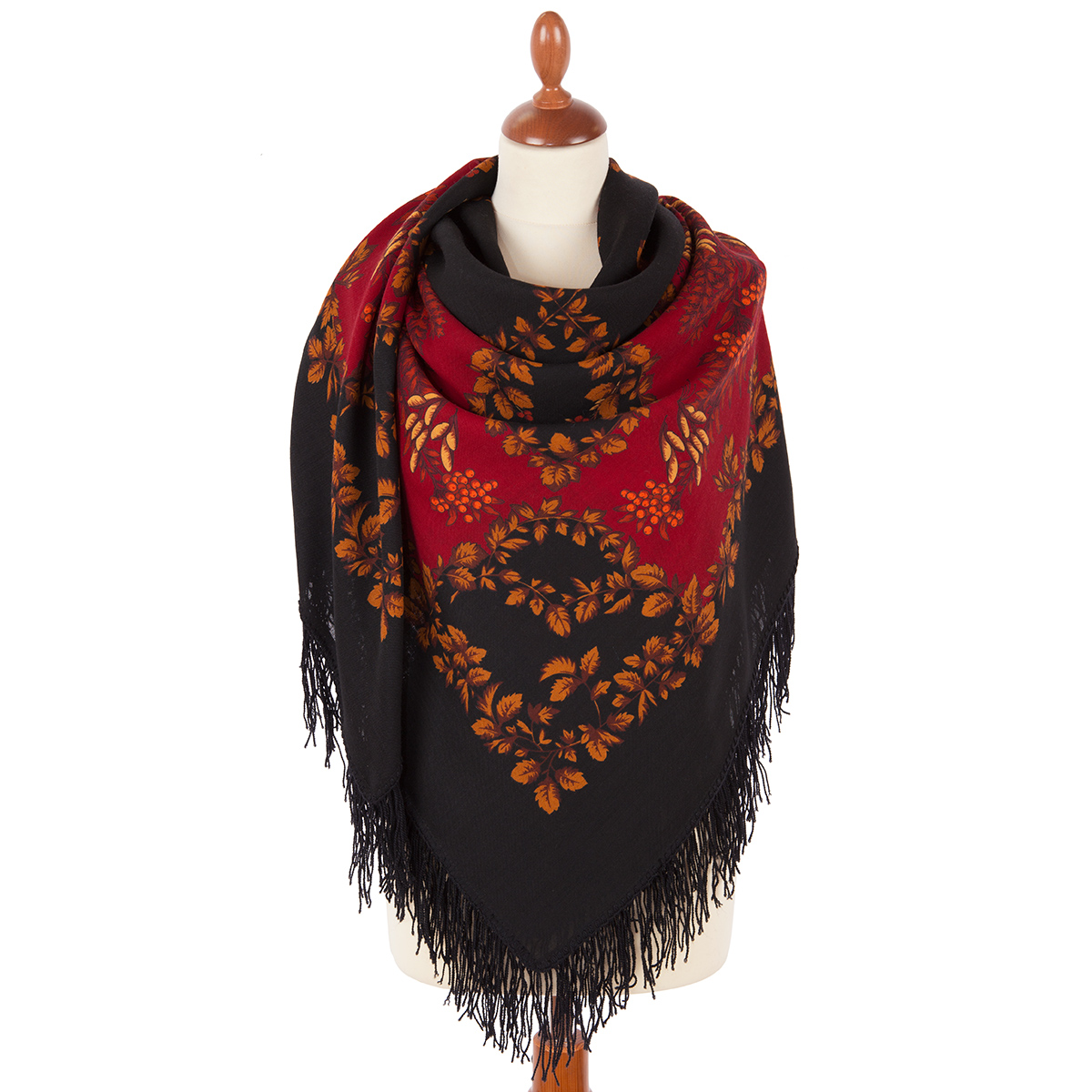 Платок шерстяной с шерстяной бахромой "Рябина", вид 25, 146x146 см