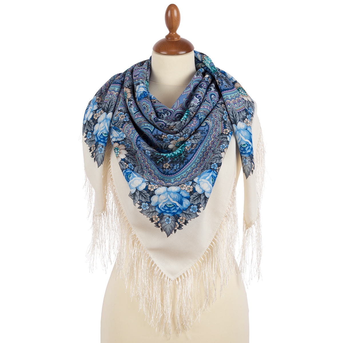 Платок шерстяной с шелковой бахромой "Золотой невод", вид 0, 110х110 см