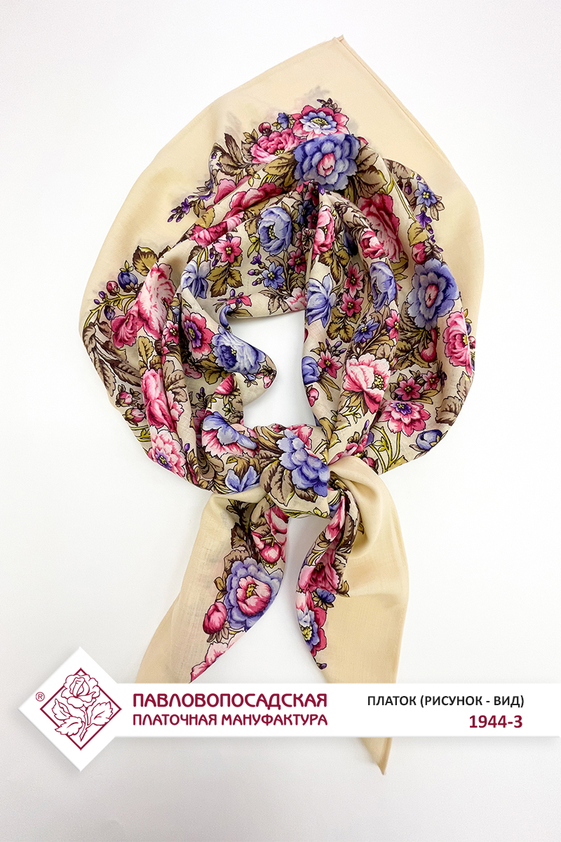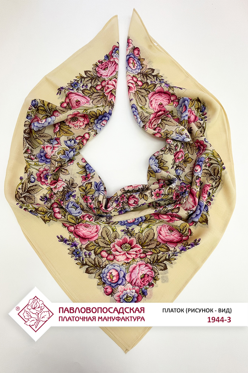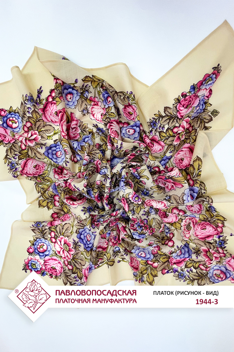 Платок шерстяной с подрубкой "Молодильные яблочки", вид 3, 125х125 см