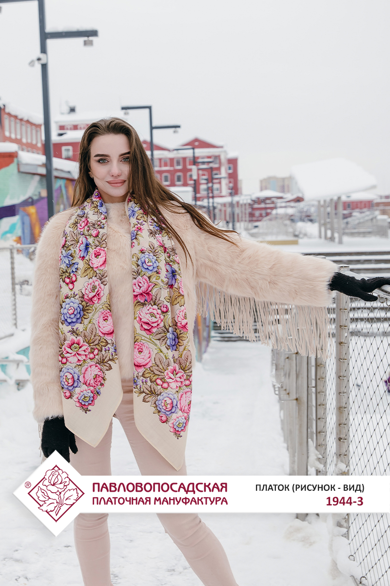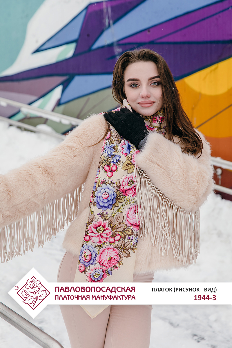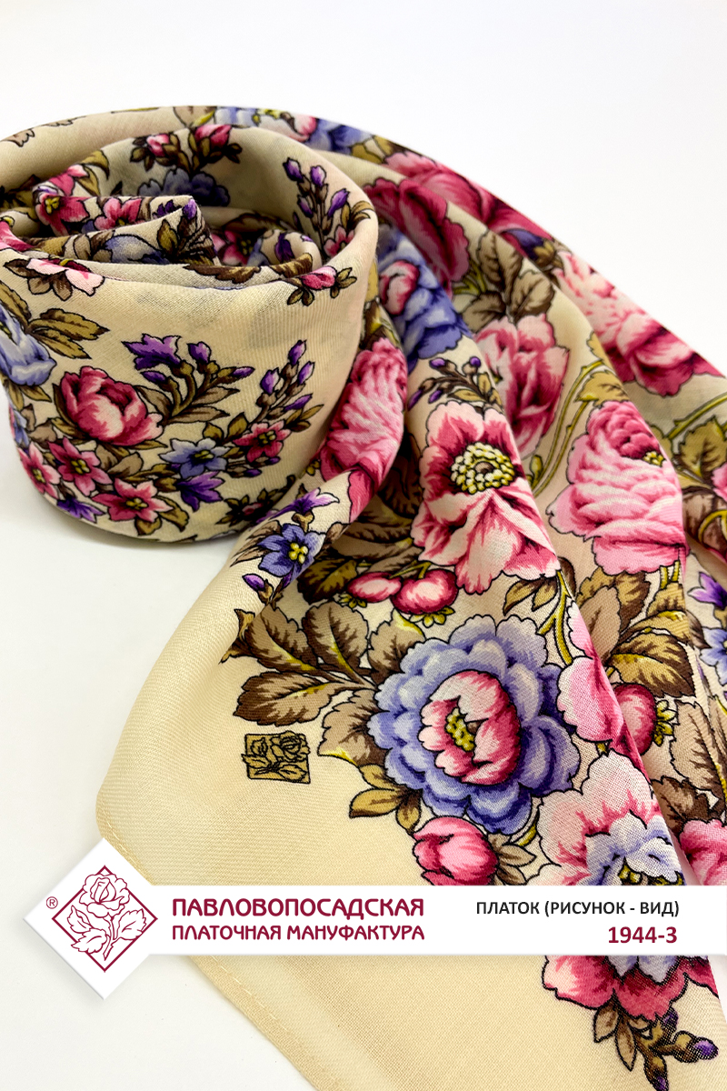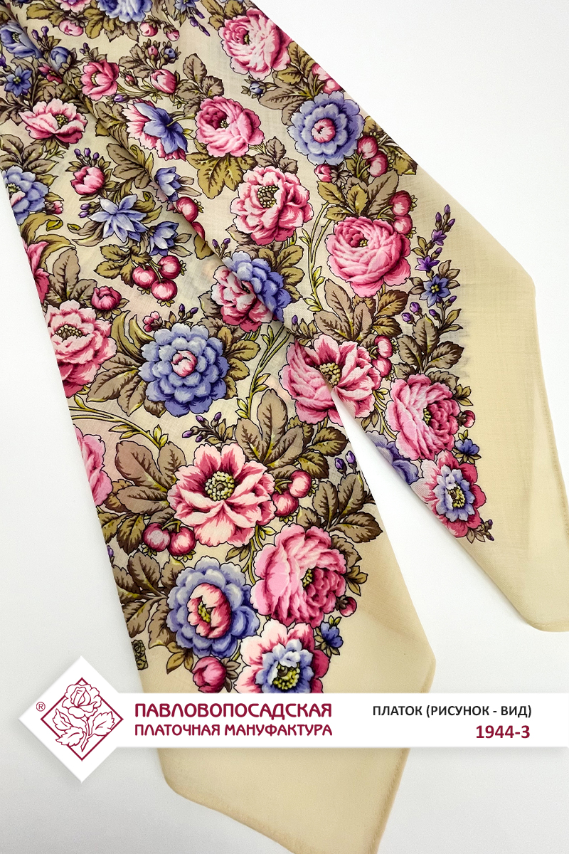 Платок шерстяной с подрубкой "Молодильные яблочки", вид 3, 125х125 см