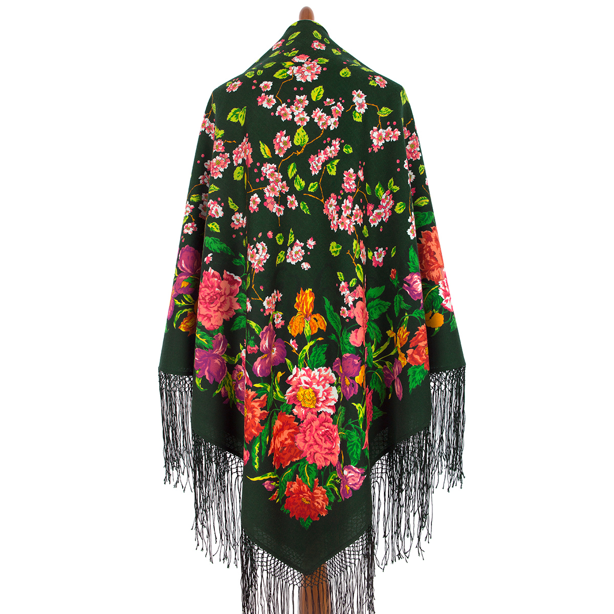 Шаль из уплотненной шерстяной ткани с шелковой бахромой "Цветущий сад 09 фон очень тёмно-зелёный, почти чёрный 148х148см Рисунок 1954 года. Восстановлен Т. Сухаревской. 5 270 руб. Наличие: очень мало Рисунок 1210-09 |