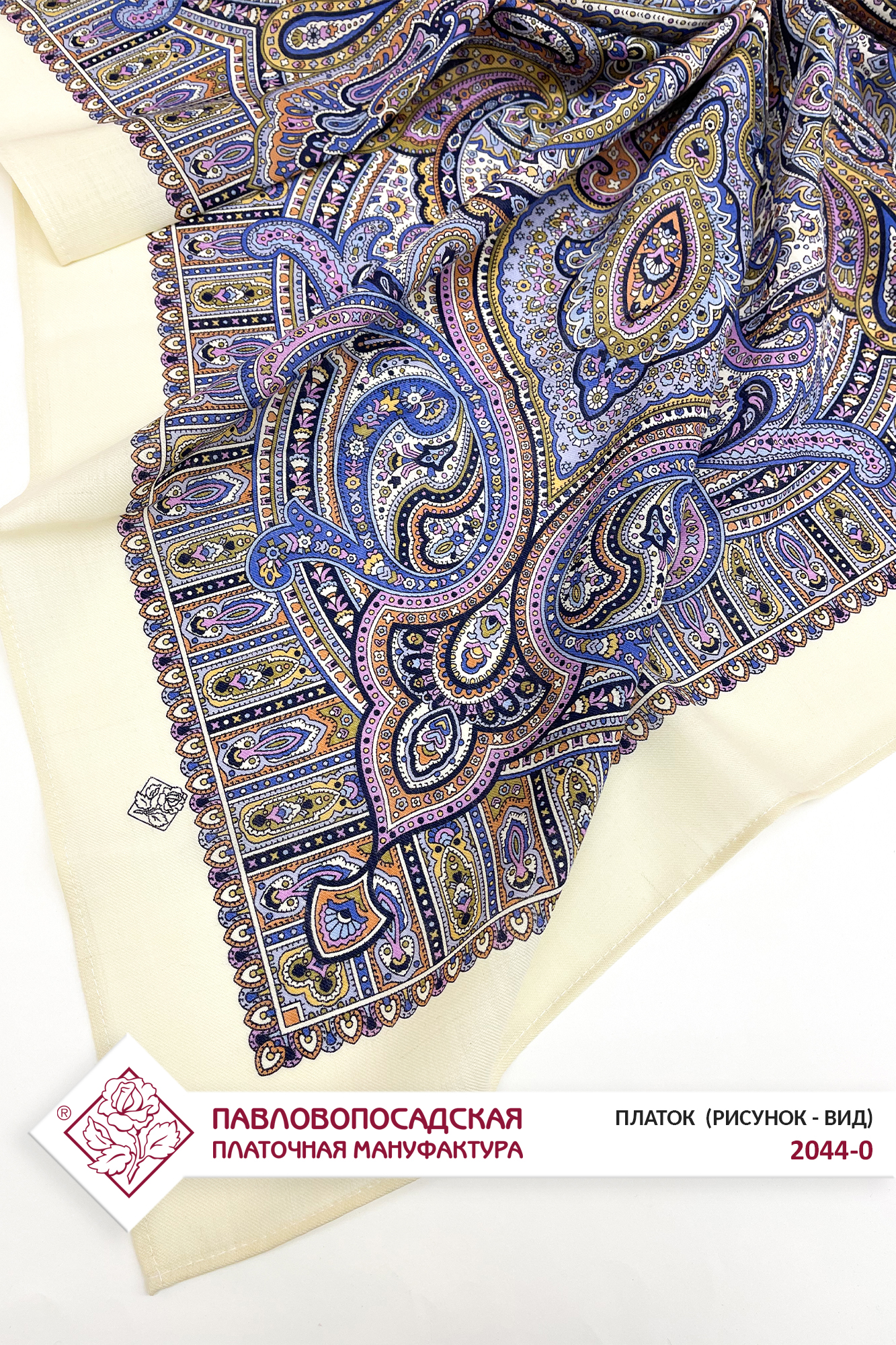 Платок шерстяной с подрубкой "Заряночка", 2044-0, 125х125 см