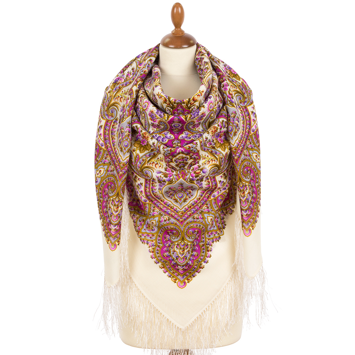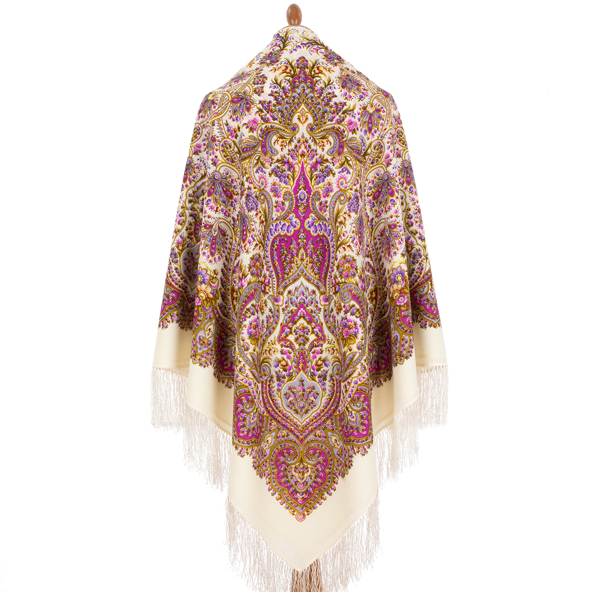 Платок шерстяной с шелковой бахромой "И снова весна", 2039-3, 146x146 см