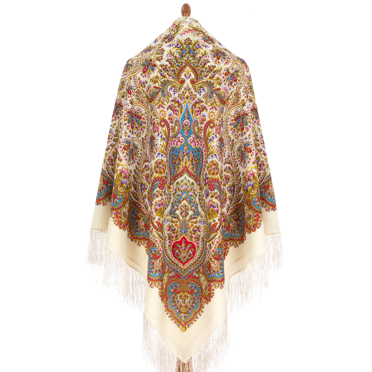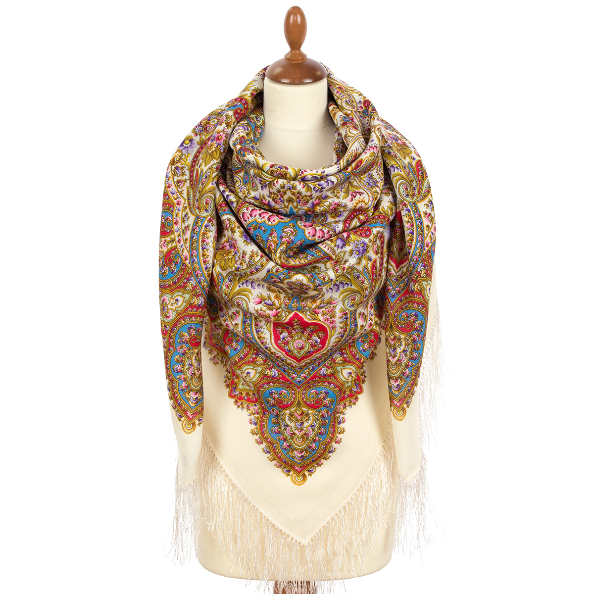 Платок шерстяной с шелковой бахромой "И снова весна", 2039-2, 146x146 см