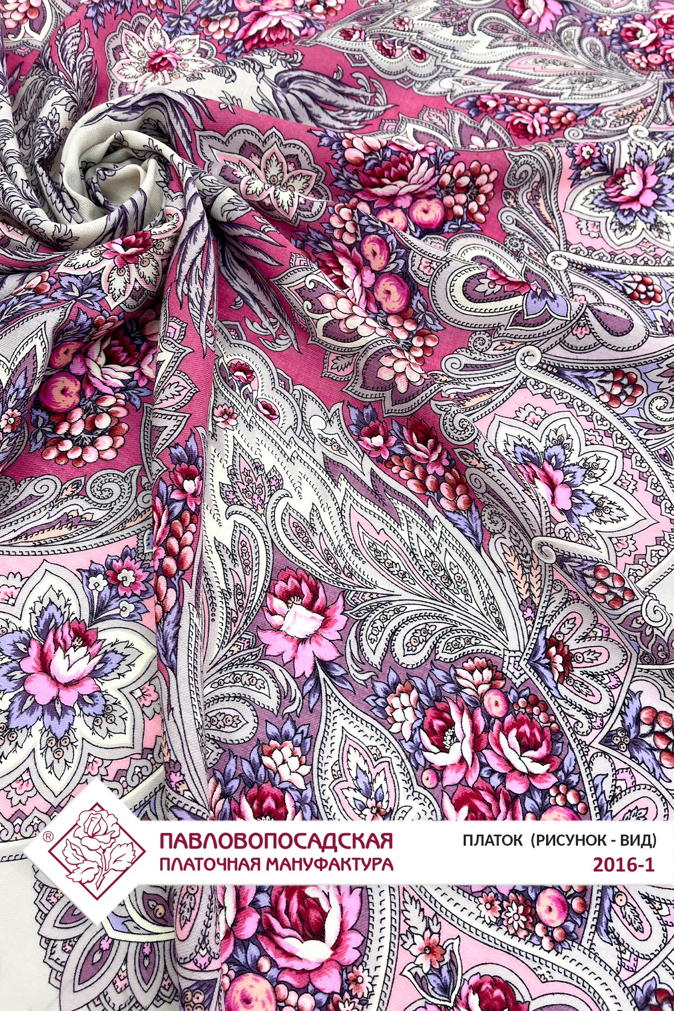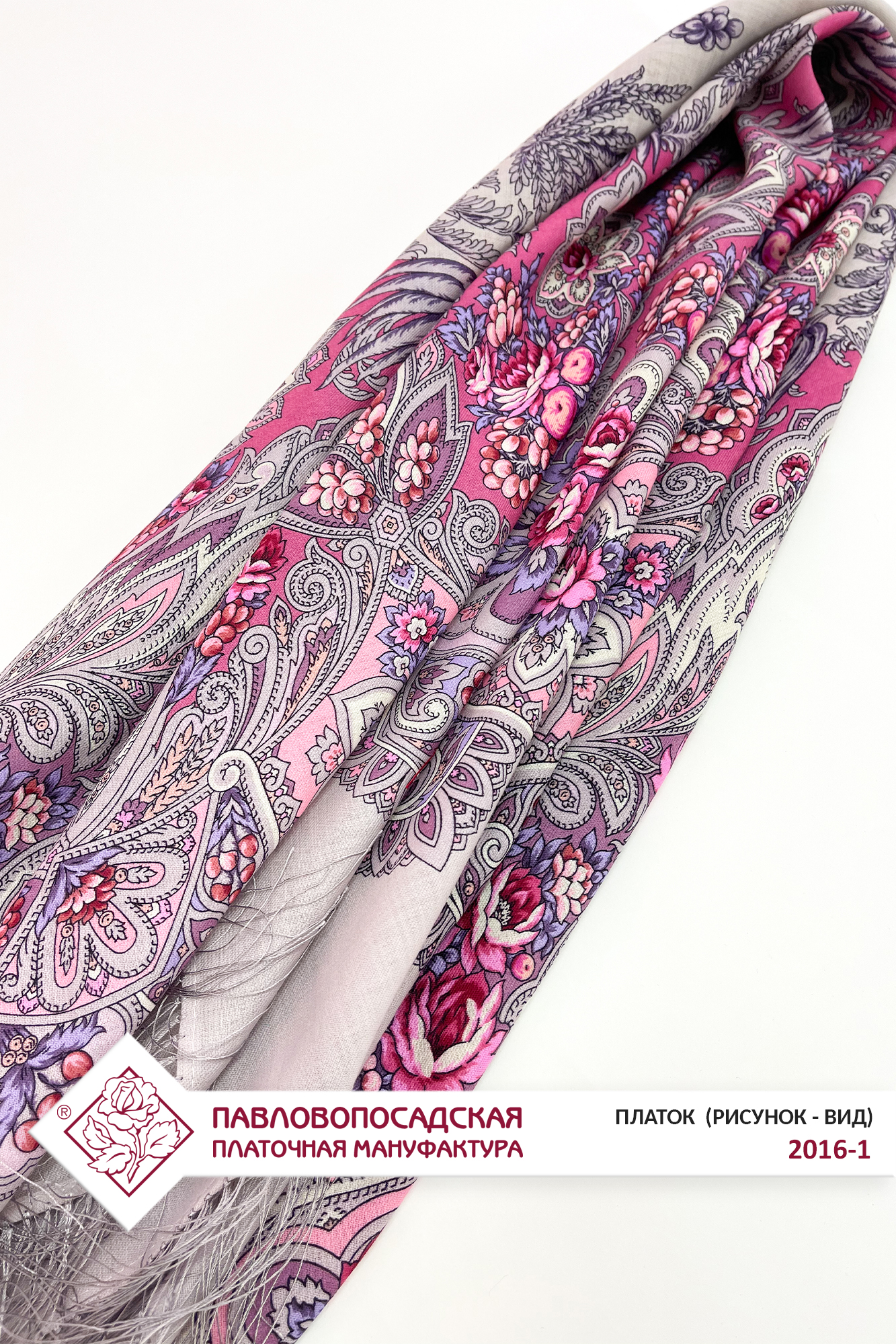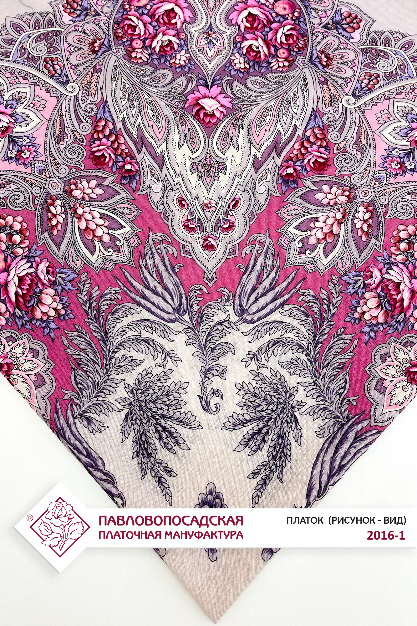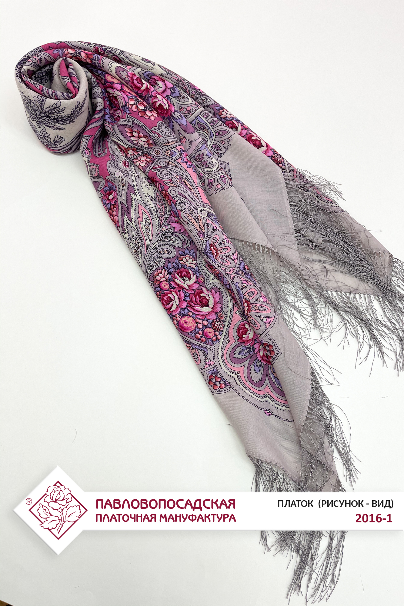 Платок шерстяной с шелковой бахромой "Зимняя роза", 2016-1, 125х125 см