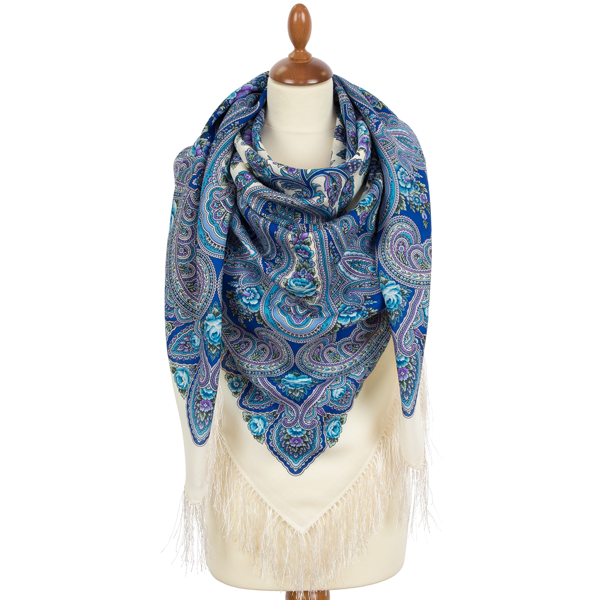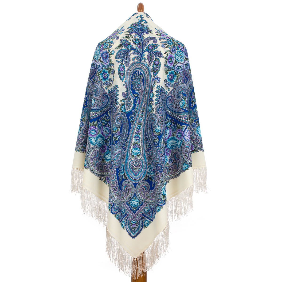 Платок шерстяной с шелковой бахромой "Фиалковые ночи",1978-0, 146x146 см