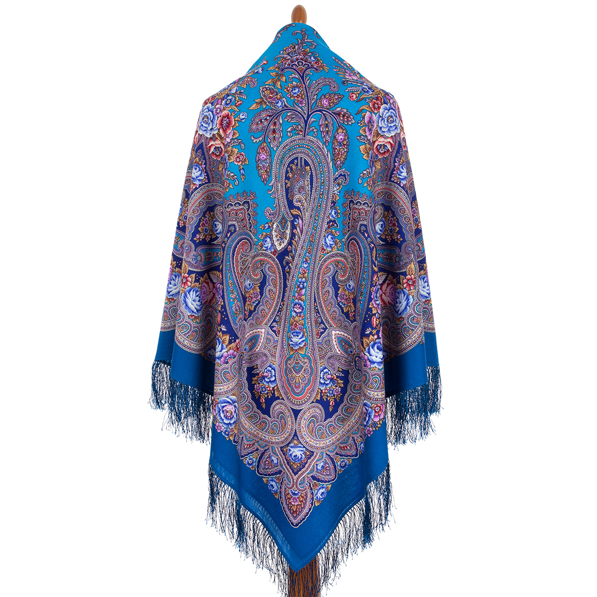Платок шерстяной с шелковой бахромой "Фиалковые ночи", 1978-12, 146x146 см