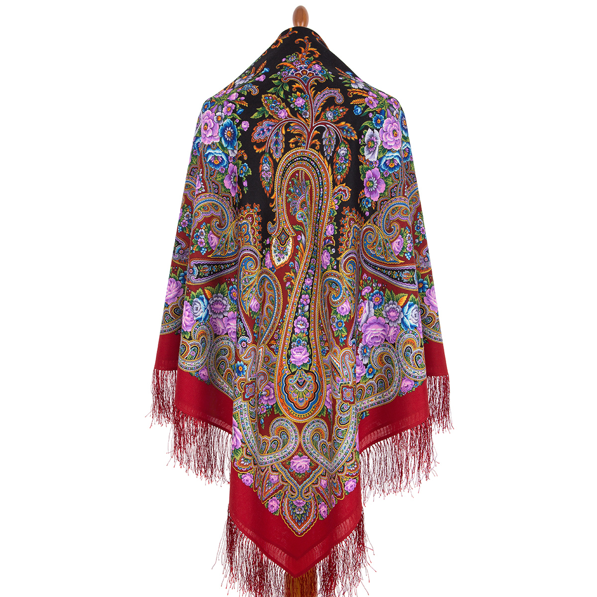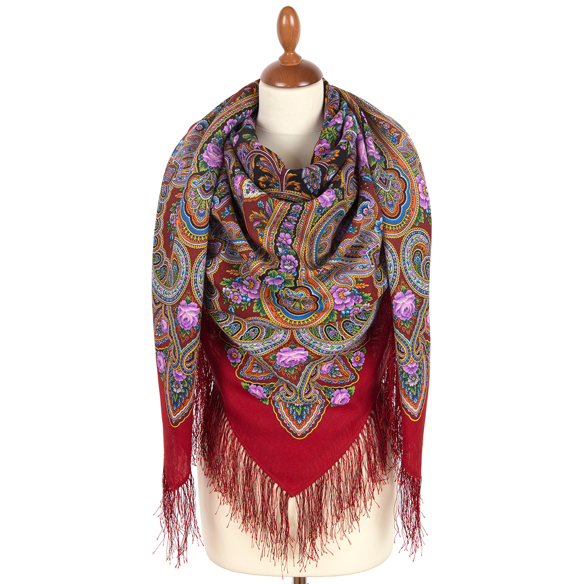 Платок шерстяной с шелковой бахромой "Фиалковые ночи", 1978-5, 146x146 см