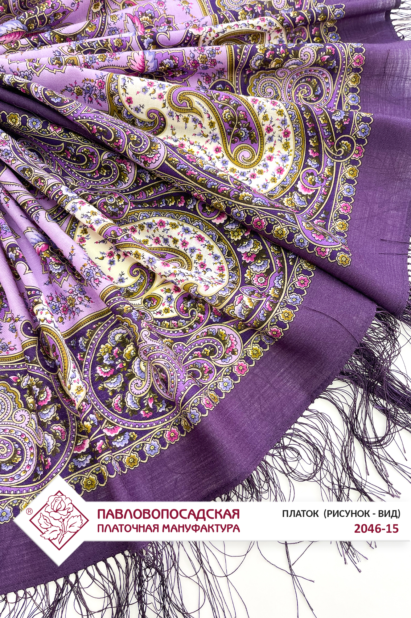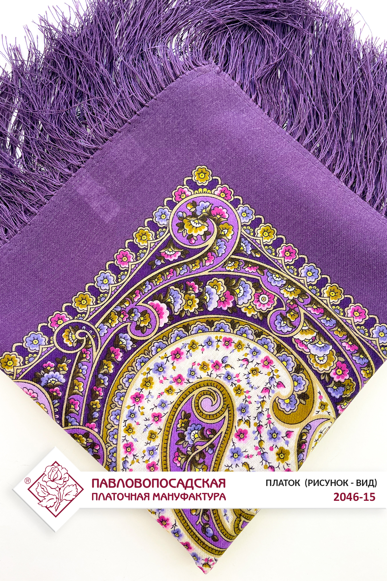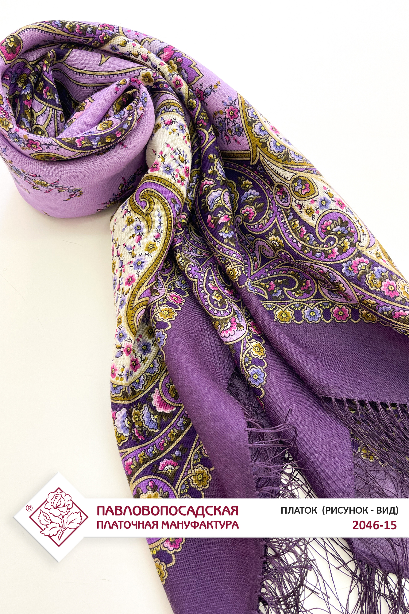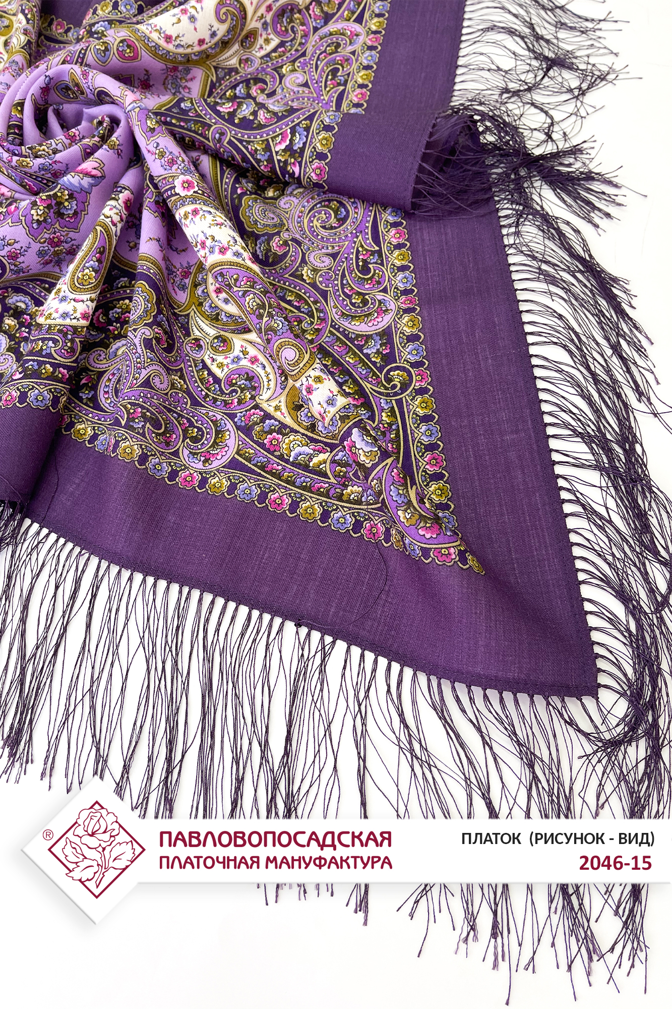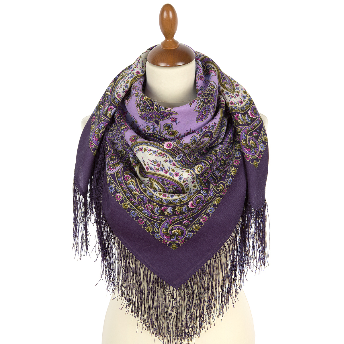 Платок шерстяной с шелковой бахромой "Былые чувства", 2046-15, 89x89 см